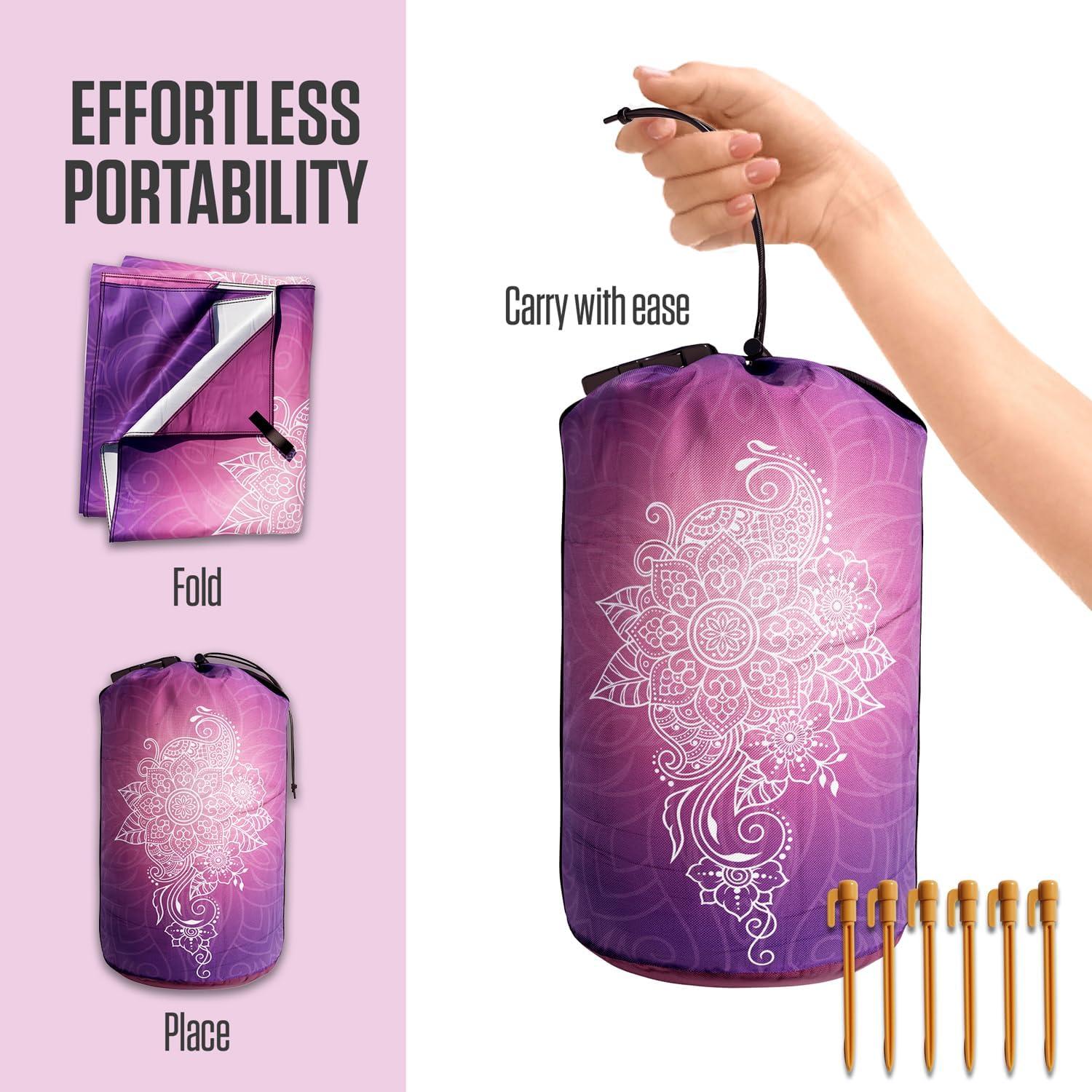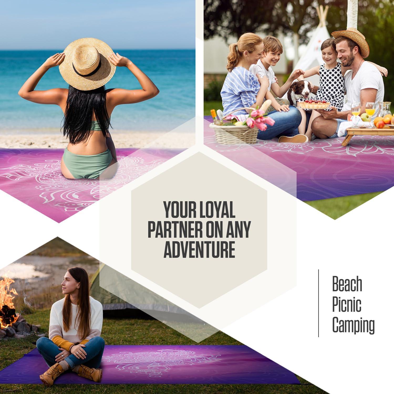 Travel-Easy Design: Despite its large size, our anti-sand beach blanket is surprisingly lightweight and compact. It folds effortlessly into a portable carry bag, making it easy to carry to the beach, park, or campsite.