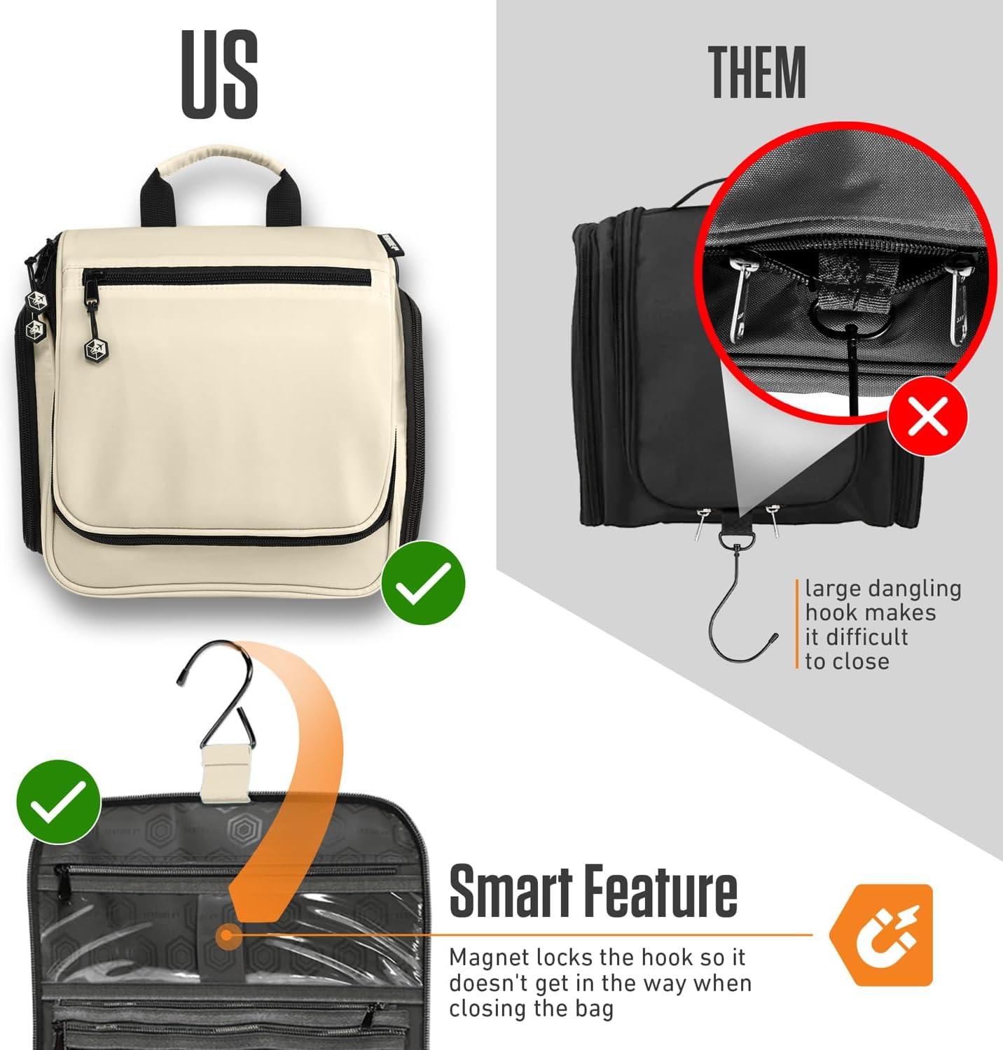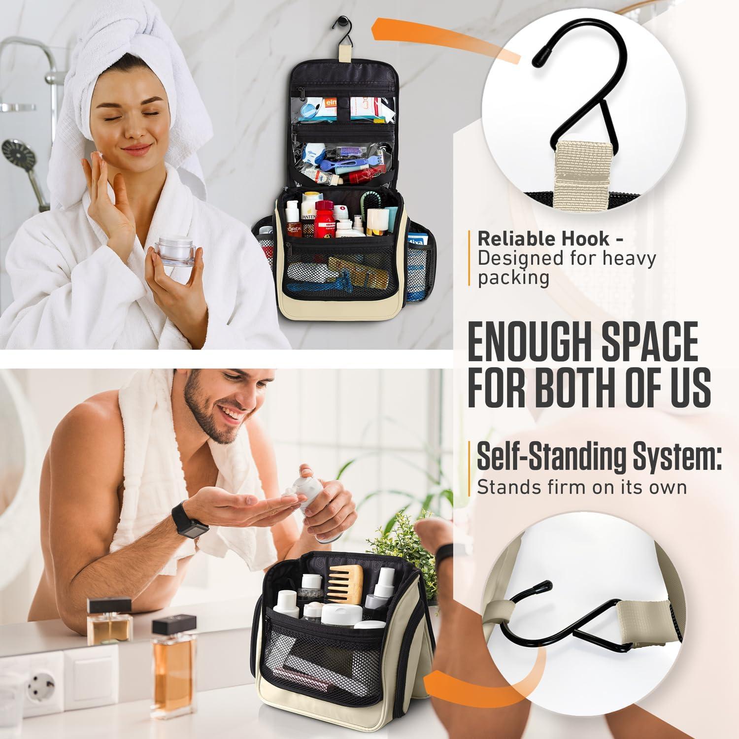 VENTURE 4TH Hanging Travel Toiletry Bag for Women & Men - Travel Organizer with Expandable Compartments & Removable Clear Pouch for Toiletries (Beige)(Beige)