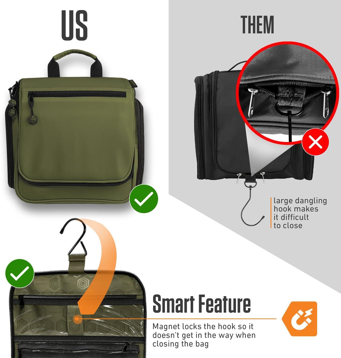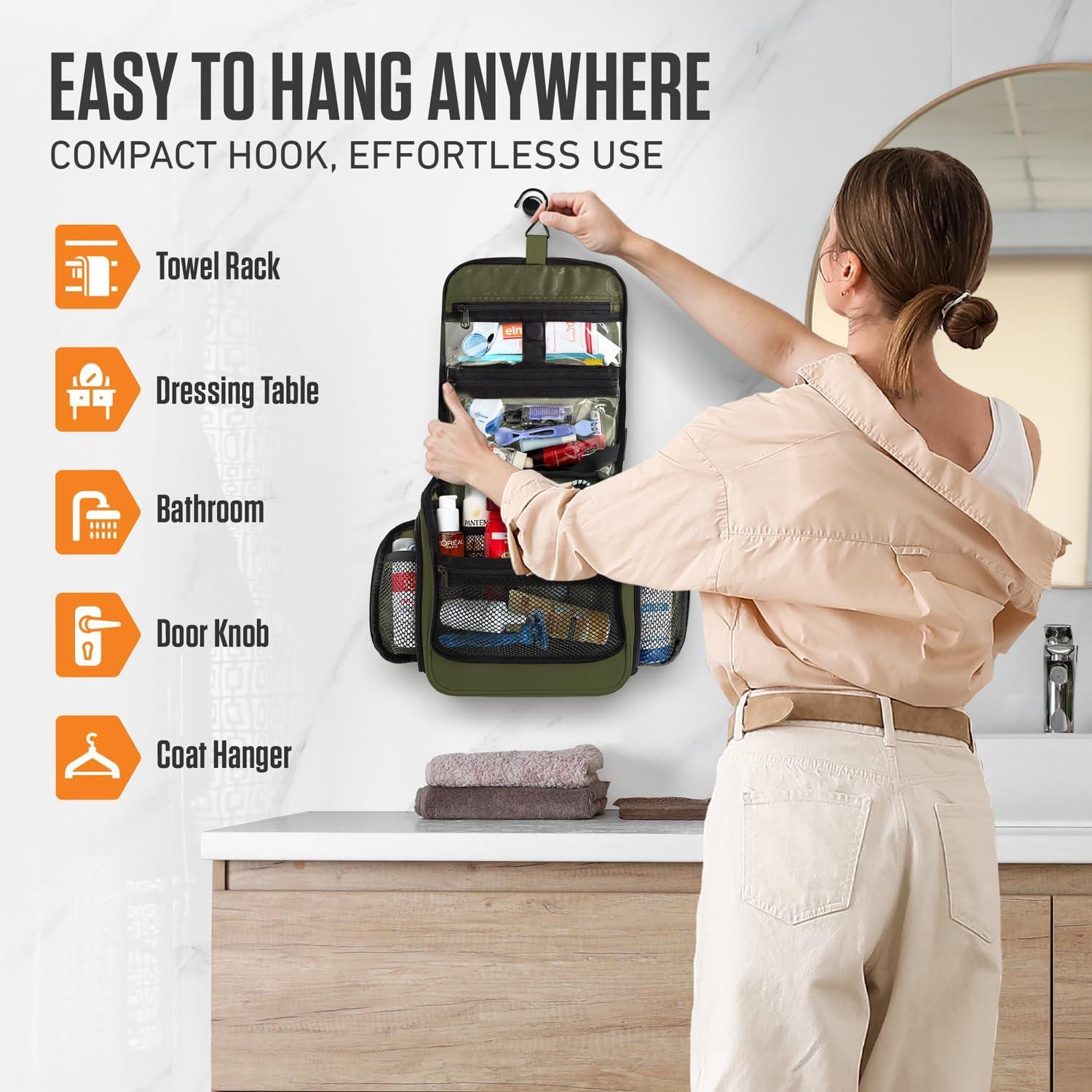 HOOK & ORGANIZATION – 18 compartments and a versatile hook let you hang it, save space, or stand it upright when needed. Perfect for travel, camping, or at home.