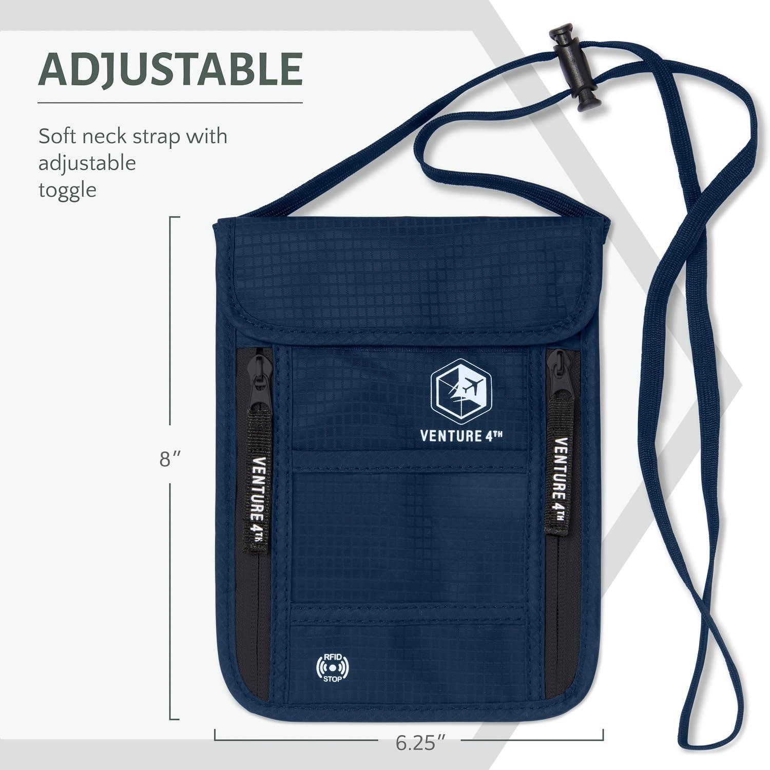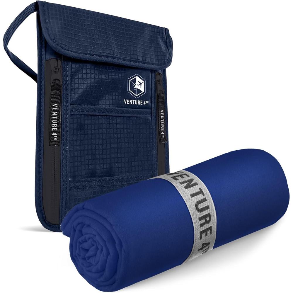 What makes this Neck Wallet and Microfiber Travel Towel bundle ideal for travel and vacations? Our Travel Towel Made from premium microfiber, it's engineered to be seven times more absorbent than a conventional gym towel. The microfiber material is thin yet robust, soft, and almost entirely lint-free. But its most remarkable feature is its quick-drying ability. Not only will you dry off in minutes, but the microfiber towel itself will also be ready for its next use in no time. Our quick dry beach towel also comes with odor-repellent qualities. The microfiber material naturally wicks away odors, ensuring that your towel smells fresh, use after use. One of the challenges of travel is packing efficiently, and a bulky towel can often take up more space than you'd like. That's no longer a concern with our microfiber bath towels. It's so light and compact that it won't add to your baggage weight or take up unnecessary room in your suitcase. Our Neck Stash Pouch features an adjustable strap, moisture-absorbing back panel and smart storage compartments. You'll barely even notice that it's there! The durable rip-stop nylon is perfect for keeping your valuables secure, while the wicking tricot backing allows air to flow naturally when the Venture 4th neck stash is worn beneath your clothesThe unique ID window ensure that you don't have to dig through your back at security points and checking stations, and the separate compartments allow for the organized and effective storage of credit cards, debit cards, passports, tickets, travel documents and mobile phones.Soft adjustable neck strap to allow you to adjust your wearing according to your preferences – whether that means storing items around your neck, over your shoulder, or across your body.