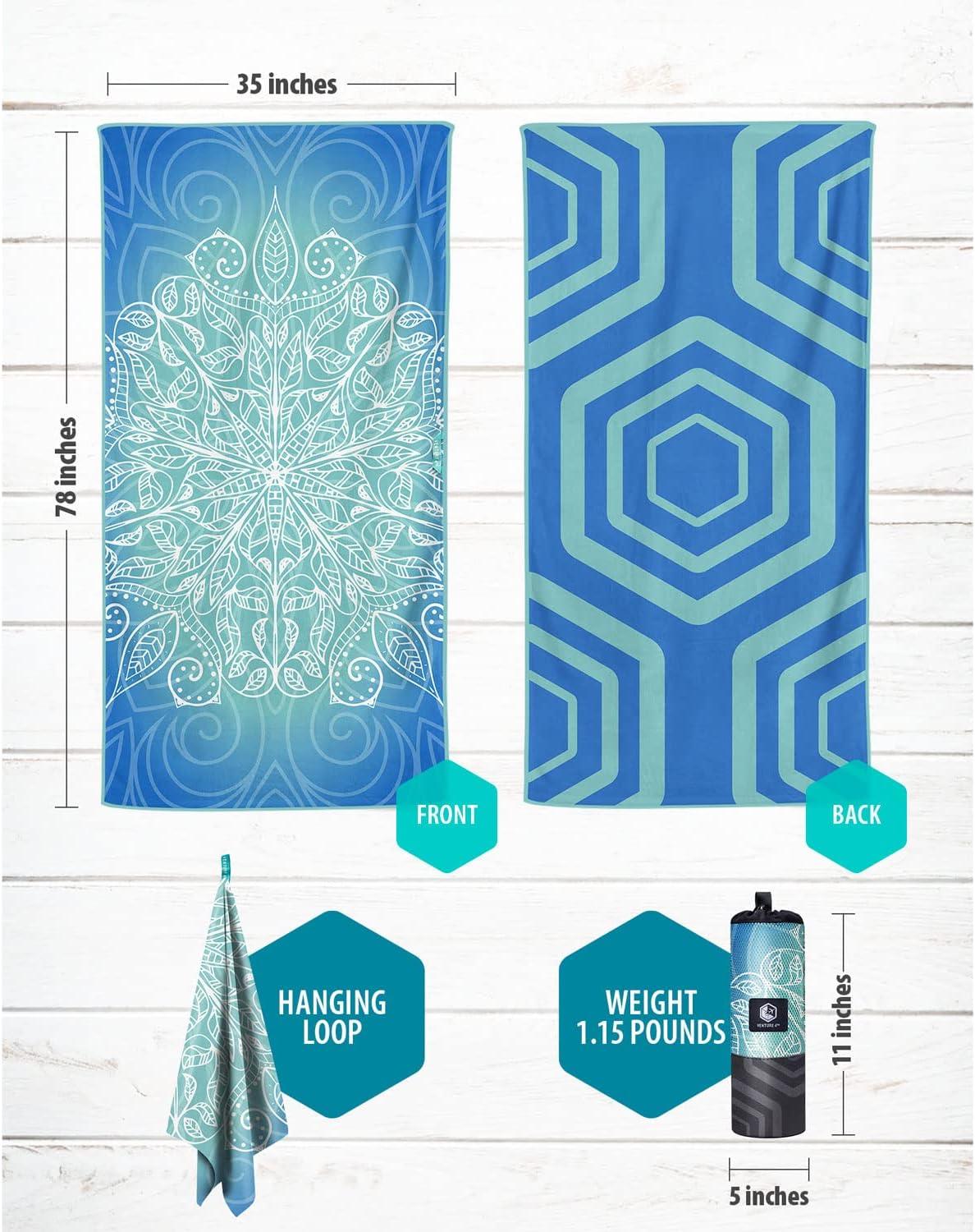 VENTURE 4TH Microfiber Beach Towel: Quick-Dry, Compact, Sand-Free, Absorbent, Sandproof and Lightweight - Perfect for Camping, Beach, and Roadtrips (Blue Lagoon Design | 35x78 inches)(Blue Mandala)