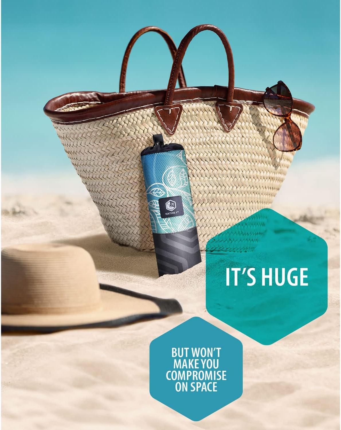✅ Large but Easily Folded – Our towel may be large but with a proper folding technique and traveling bag that comes with it, you’ll have plenty of room in your suitcase, backpack or beach bag. Just fold it in half twice, and roll it to fit the bag.