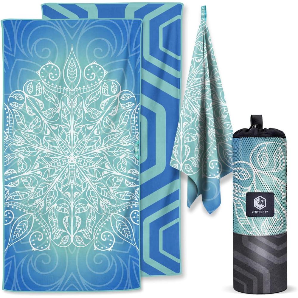 imageVENTURE 4TH Microfiber Beach Towel QuickDry Compact SandFree Absorbent Sandproof and Lightweight  Perfect for Camping Beach and Roadtrips Blue Lagoon Design  35x78 inchesBlue Mandala