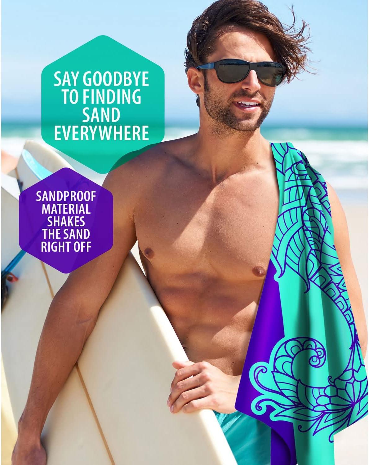 ✅ Sand-Free and Quick Dry – Thanks to the microfiber’s fast drying ability, sand doesn’t stick to it and neither does dirt! No more finding sand for days after you left the beach–with microfiber towels, you leave sand where it belongs.