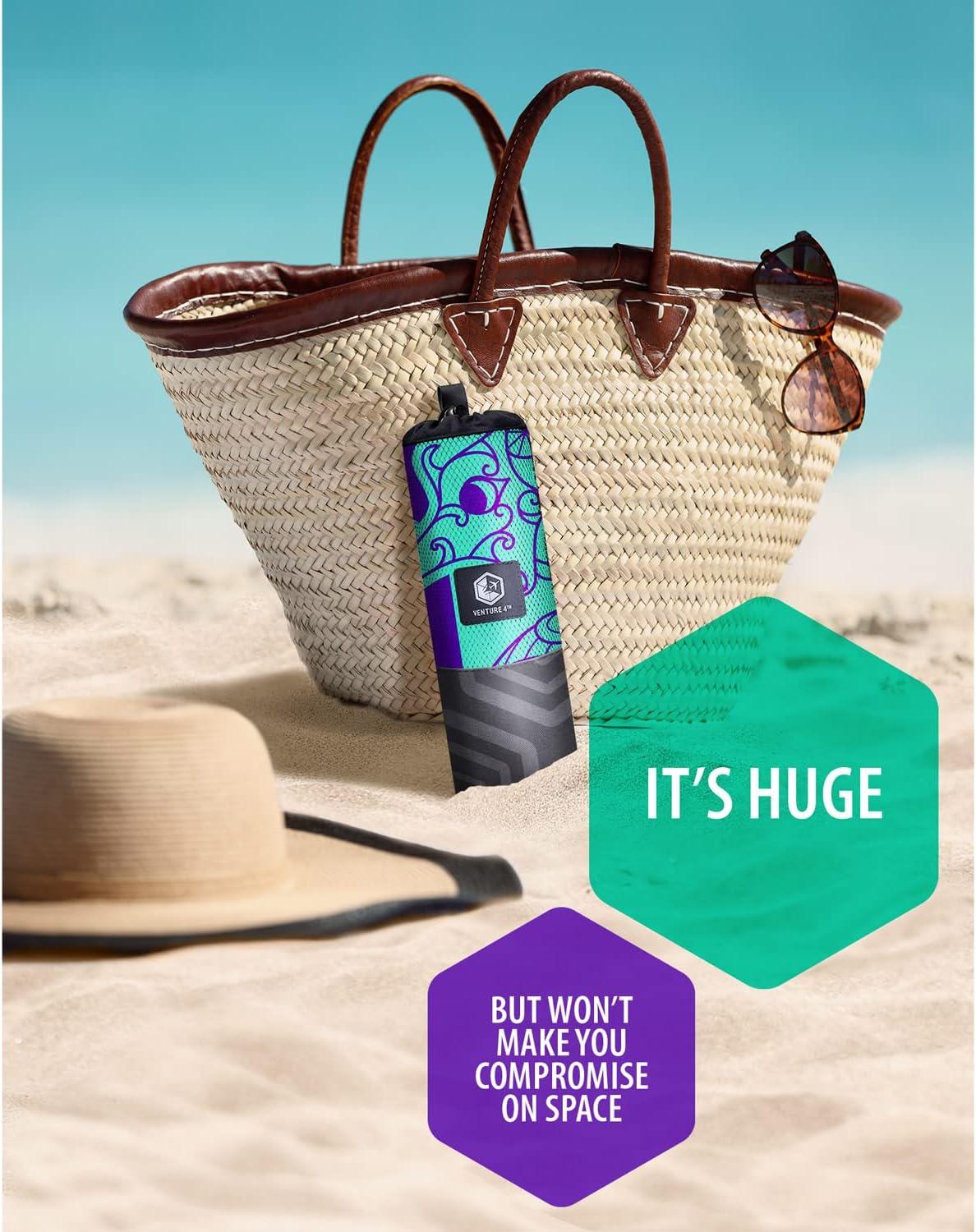 VENTURE 4TH Microfiber Beach Towel: Quick-Dry, Compact, Sand-Free, Absorbent, Sandproof and Lightweight – Perfect for Camping, Beach, and Roadtrips (Blue Lagoon Design | 35×78 inches)(Midnight Bloom)
