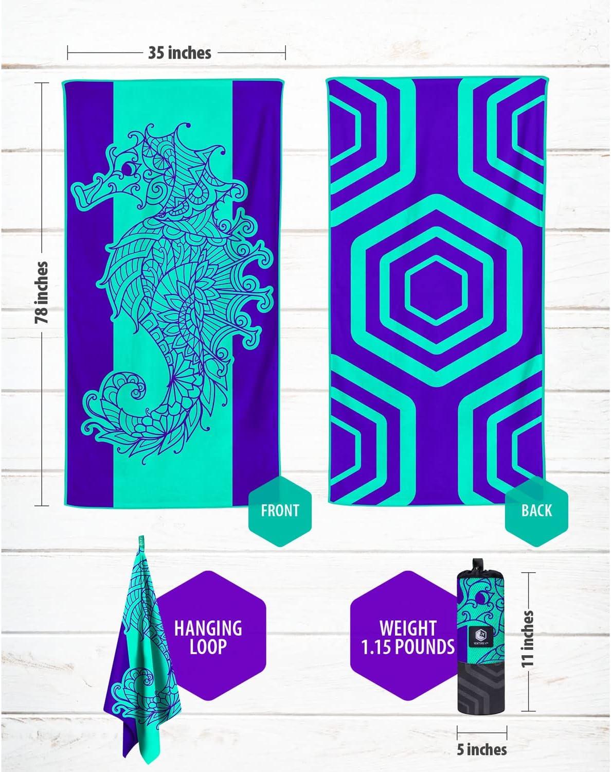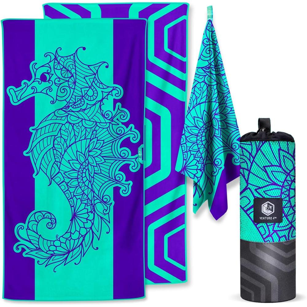 imageVENTURE 4TH Microfiber Beach Towel QuickDry Compact SandFree Absorbent Sandproof and Lightweight  Perfect for Camping Beach and Roadtrips Blue Lagoon Design  35x78 inchesMandala Seahorse