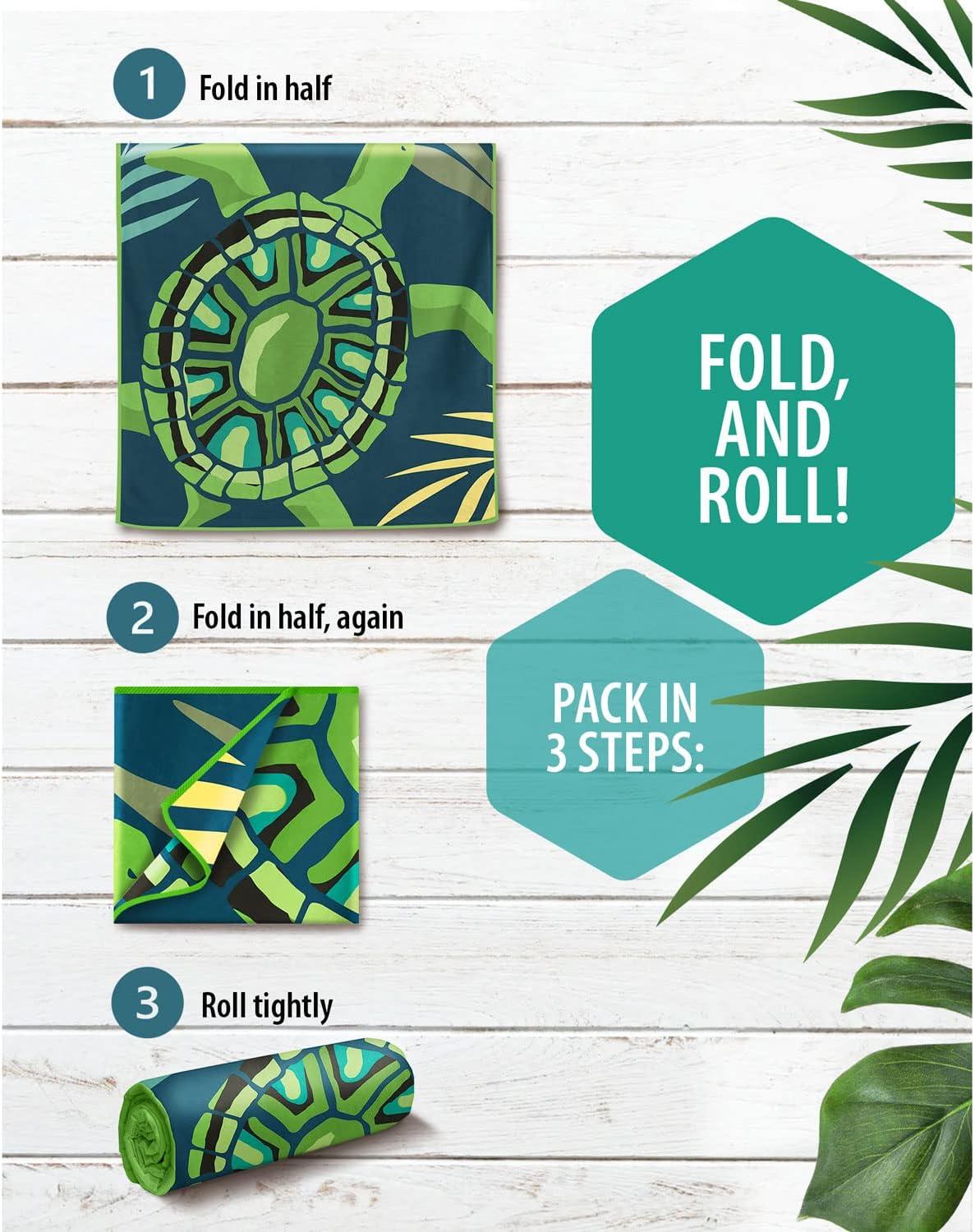 ✅ Large but Easily Folded – Our towel may be large but with a proper folding technique and traveling bag that comes with it, you’ll have plenty of room in your suitcase, backpack or beach bag. Just fold it in half twice, and roll it to fit the bag.