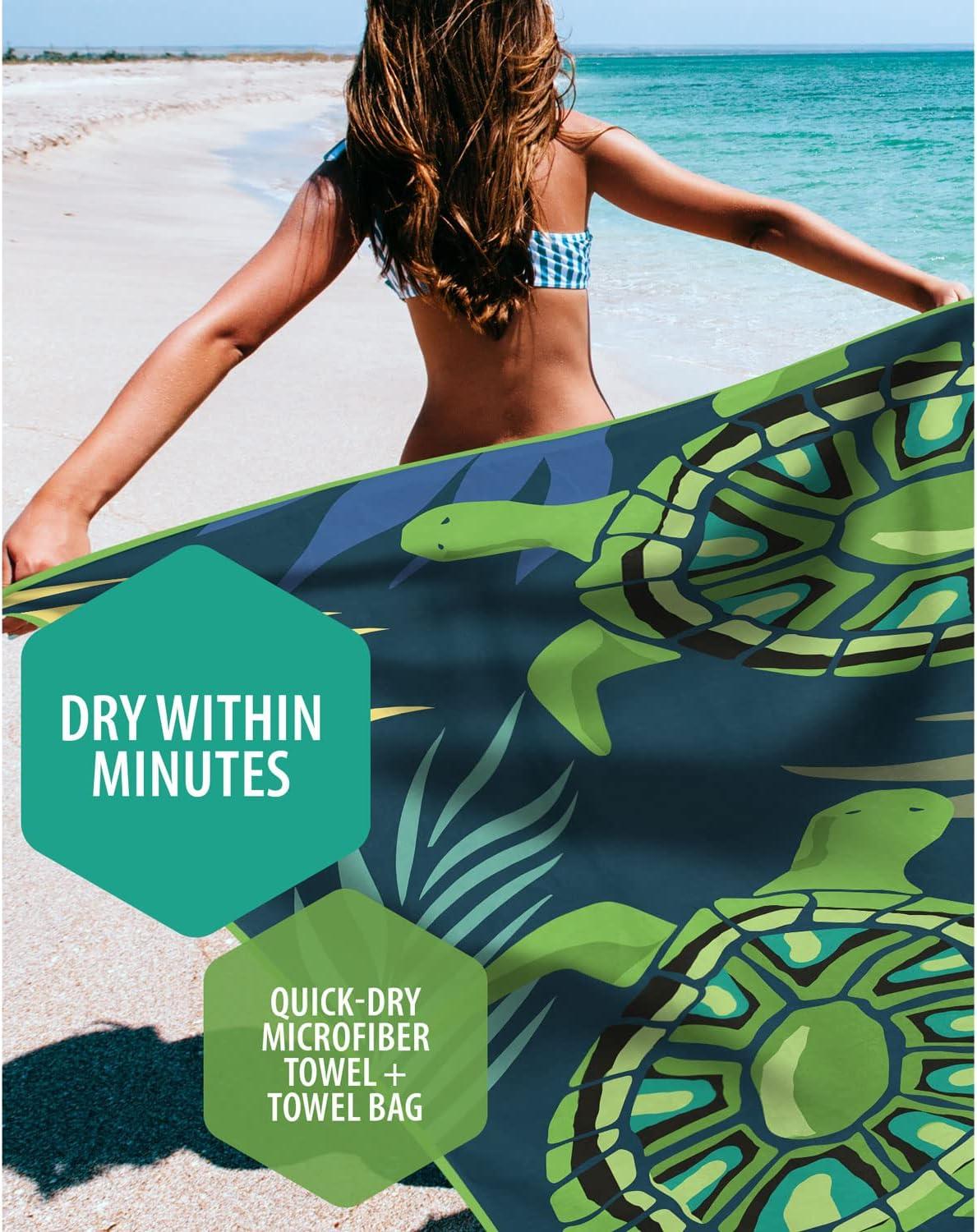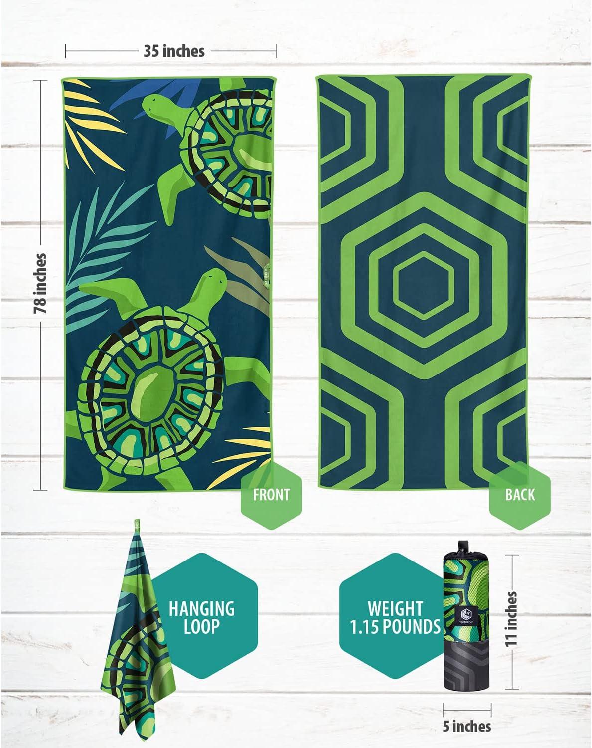 VENTURE 4TH Microfiber Beach Towel: Quick-Dry, Compact, Sand-Free, Absorbent, Sandproof and Lightweight - Perfect for Camping, Beach, and Roadtrips (Blue Lagoon Design | 35x78 inches)(Navy Turtle)