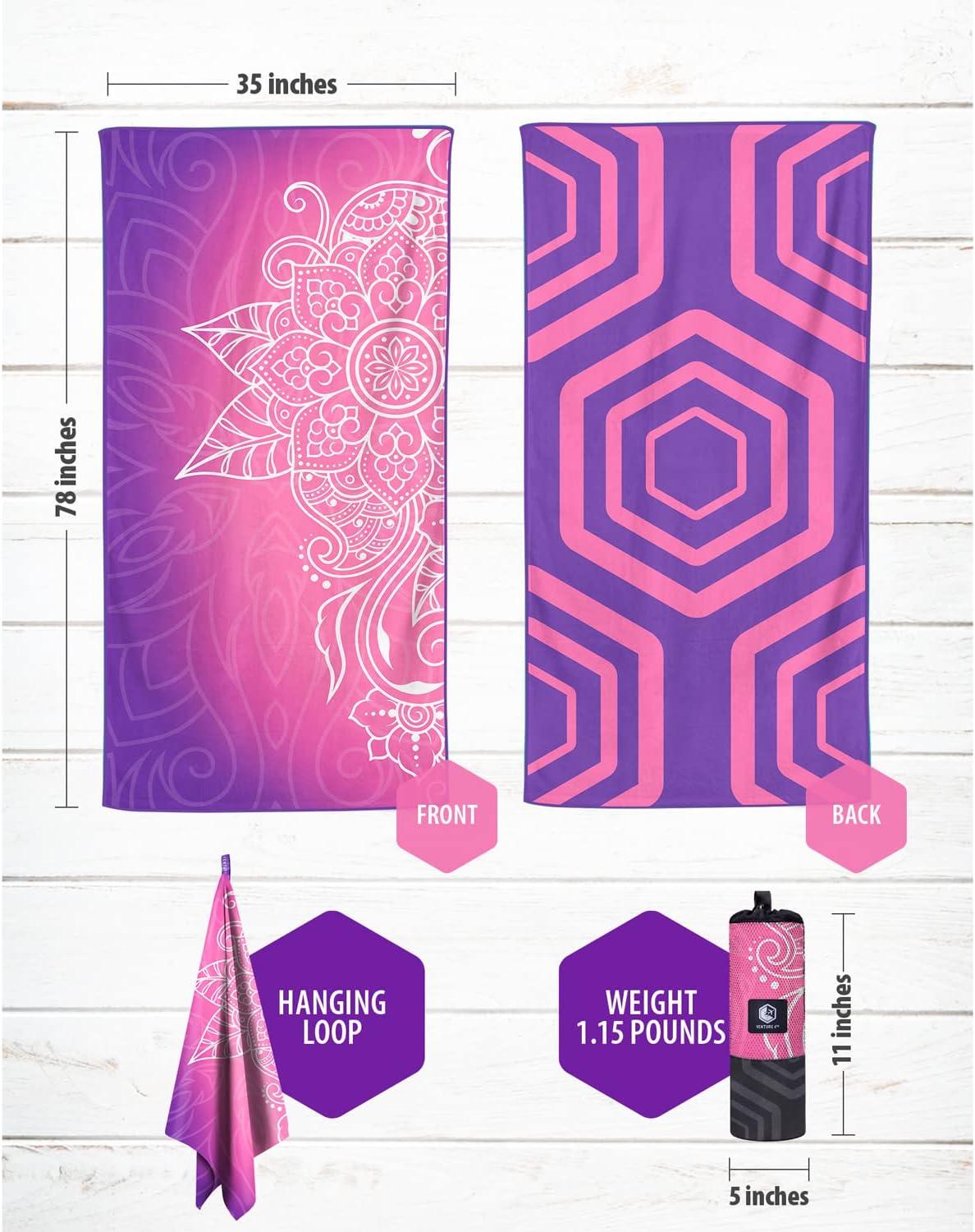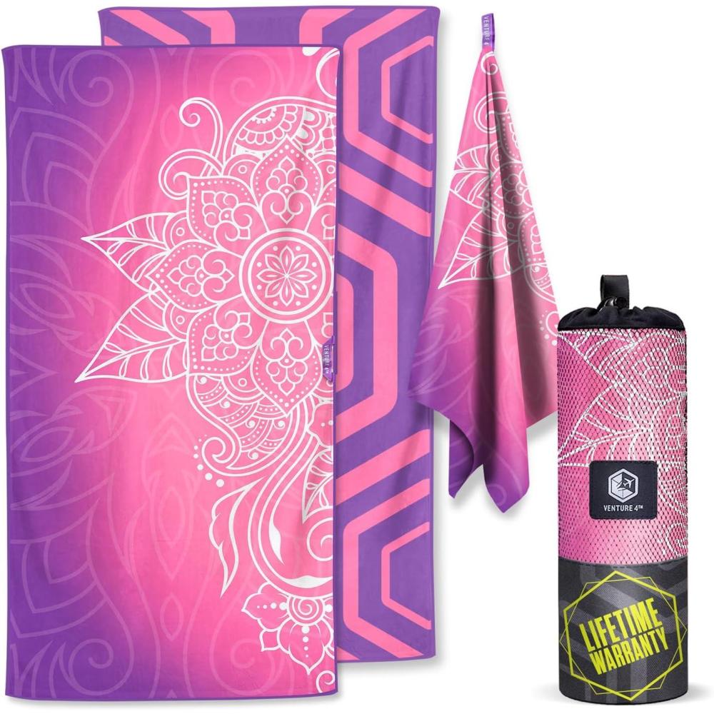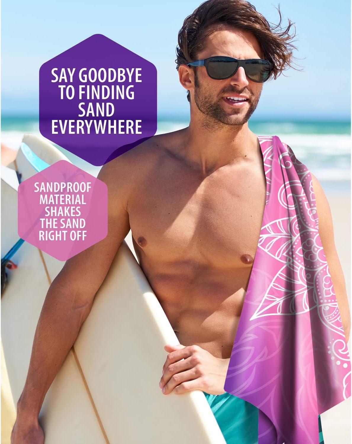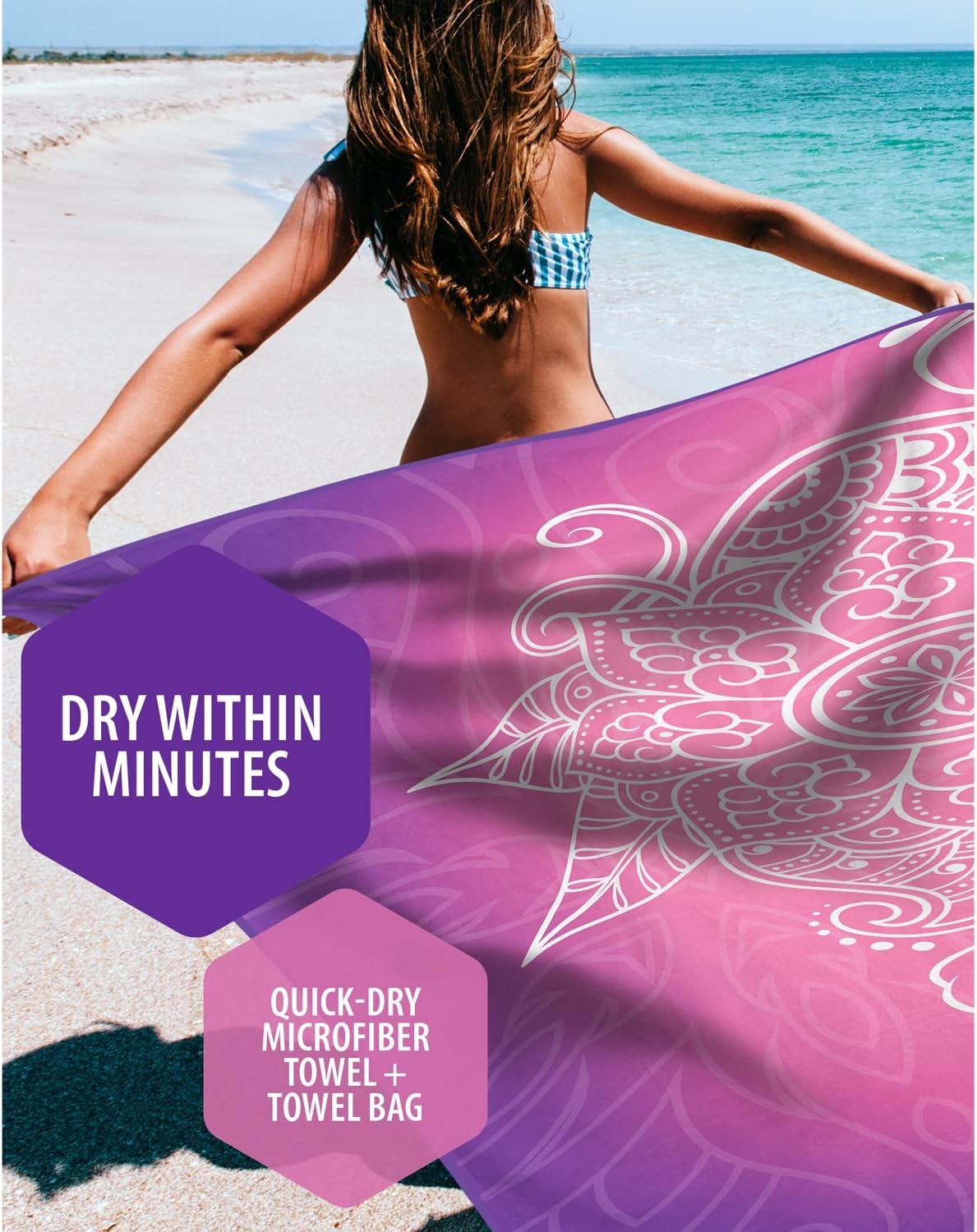 VENTURE 4TH Microfiber Beach Towel: Quick-Dry, Compact, Sand-Free, Absorbent, Sandproof and Lightweight - Perfect for Camping, Beach, and Roadtrips (Blue Lagoon Design | 35x78 inches)(Purple Mandala)