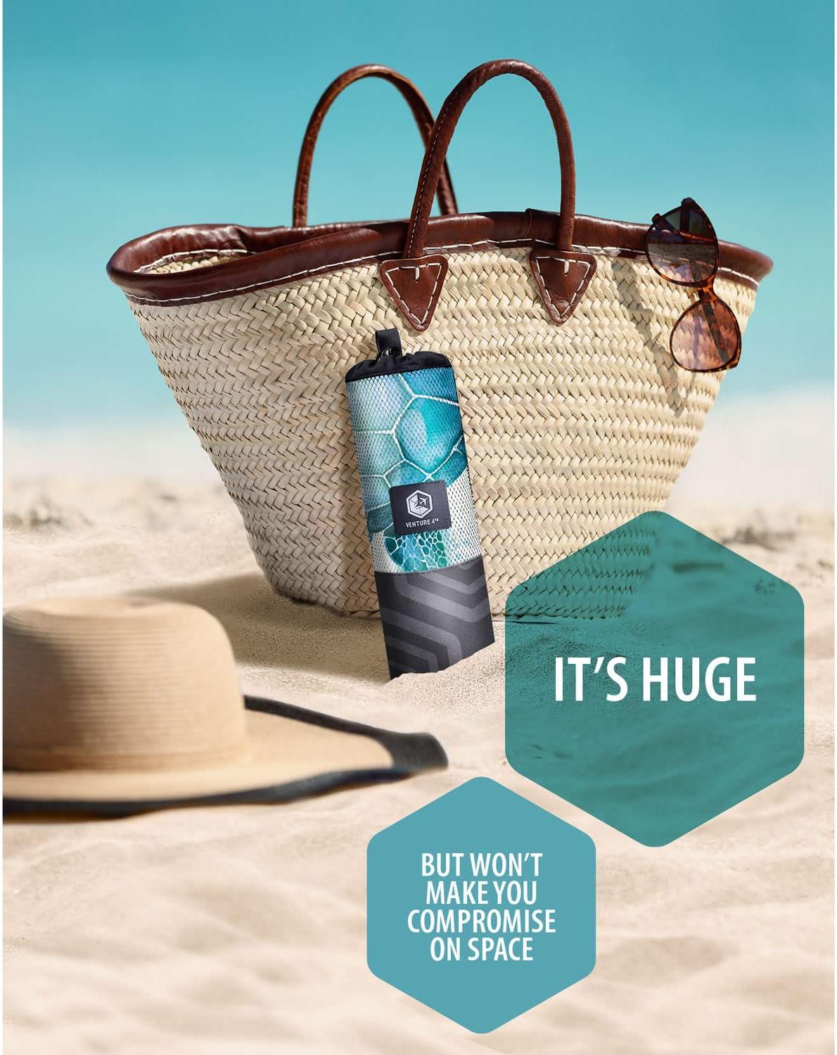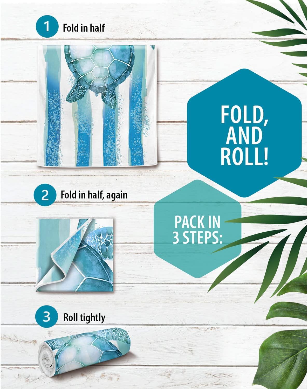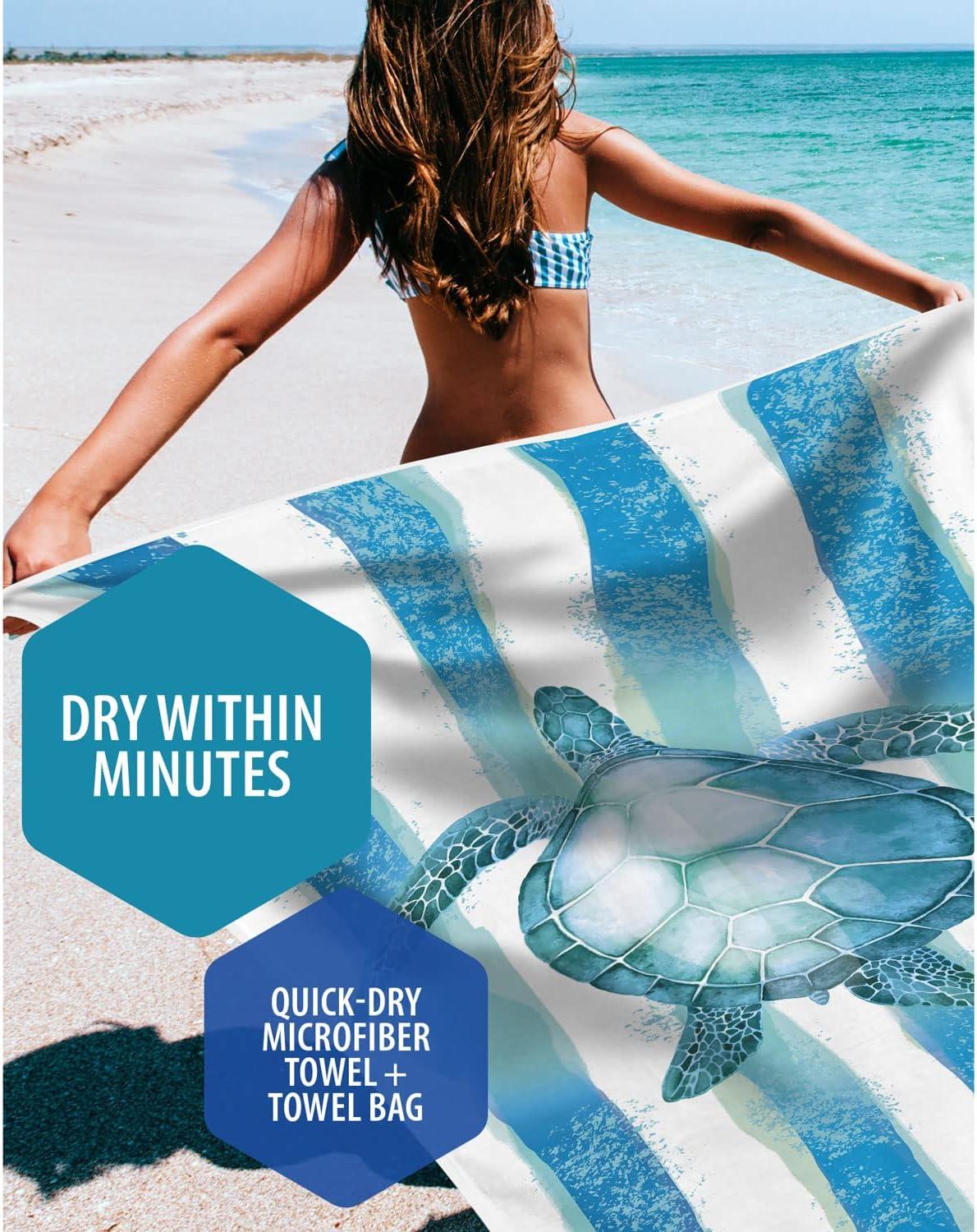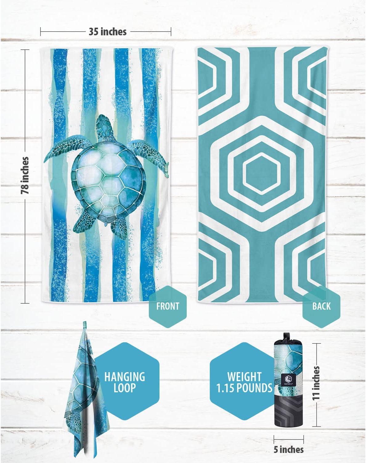 VENTURE 4TH Microfiber Beach Towel: Quick-Dry, Compact, Sand-Free, Absorbent, Sandproof and Lightweight - Perfect for Camping, Beach, and Roadtrips (Blue Lagoon Design | 35x78 inches)(Striped Turtle)