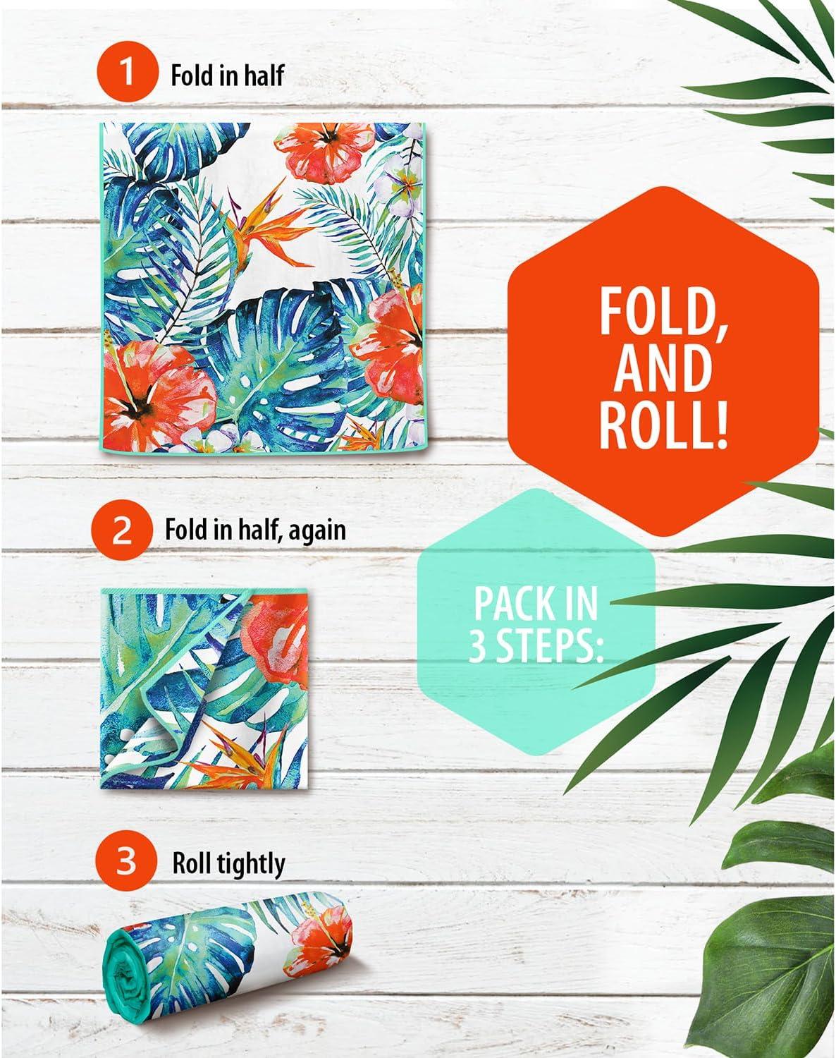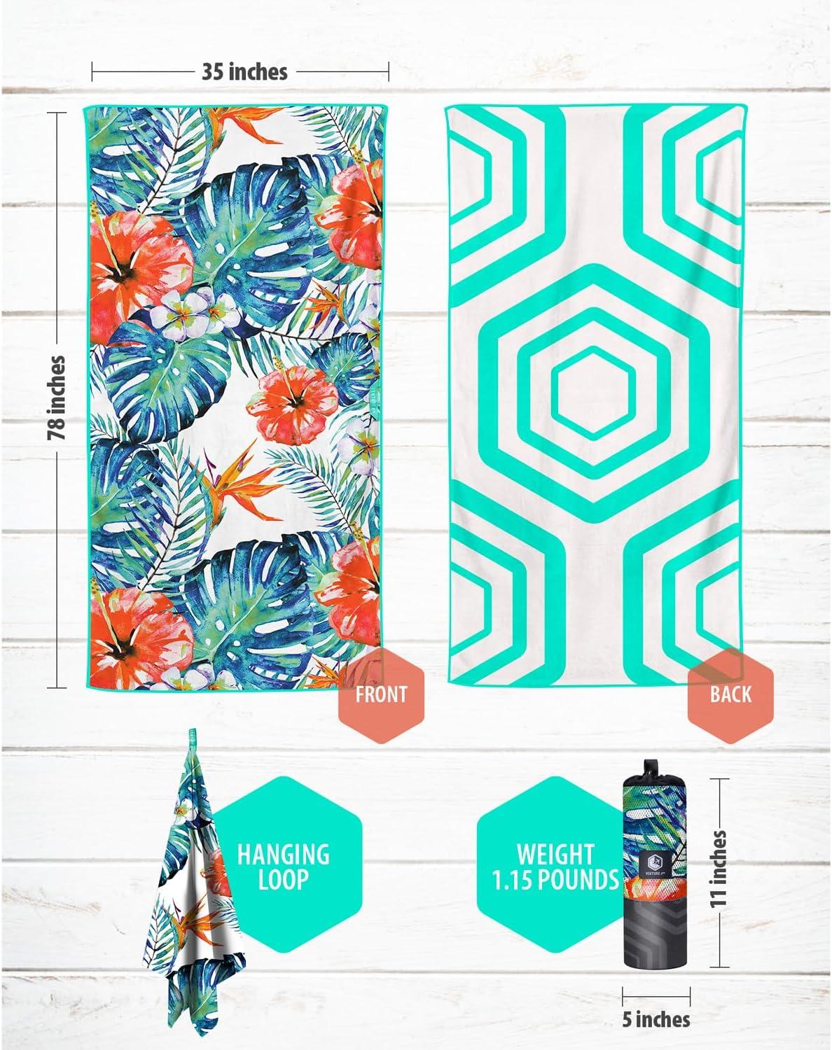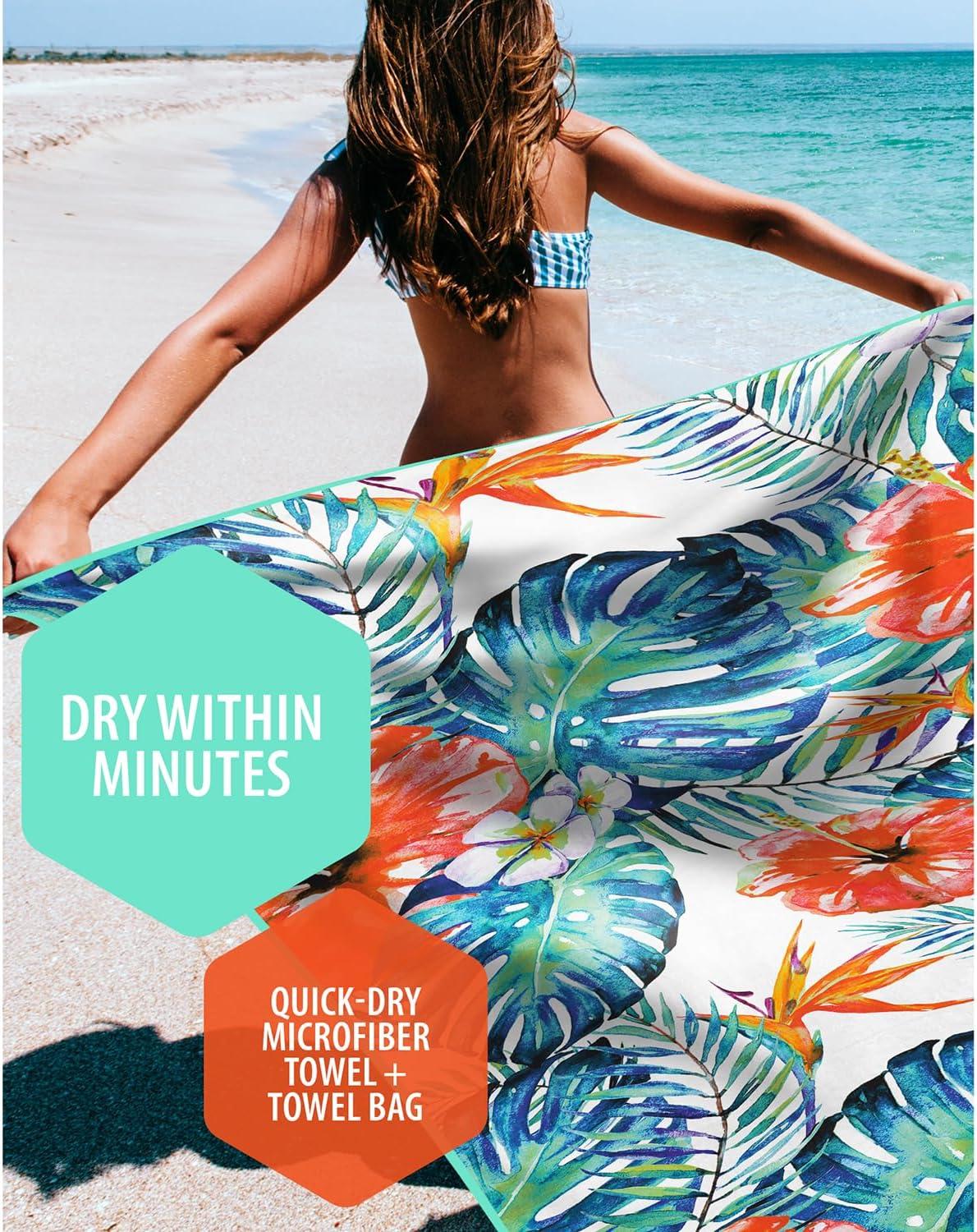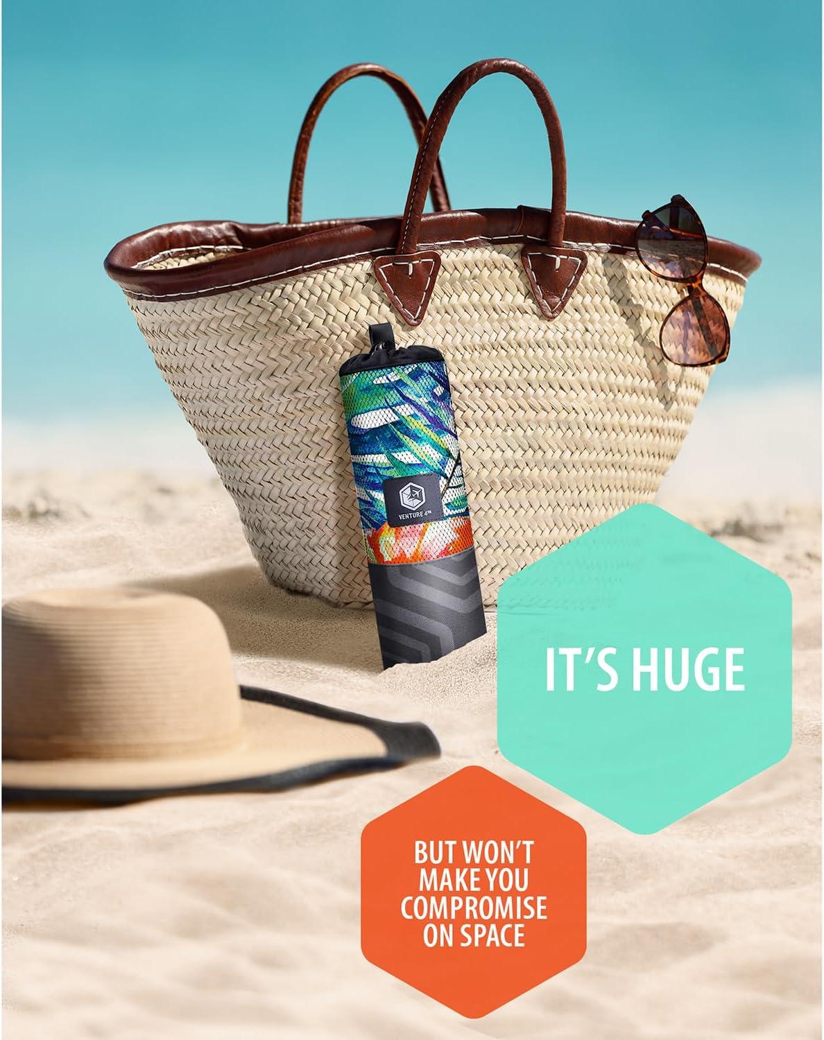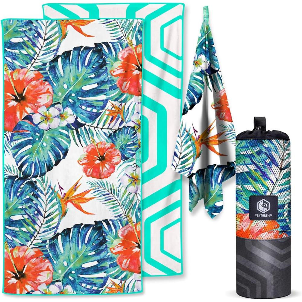 VENTURE 4TH Microfiber Beach Towel: Quick-Dry, Compact, Sand-Free, Absorbent, Sandproof and Lightweight - Perfect for Camping, Beach, and Roadtrips (Blue Lagoon Design | 35x78 inches)(Tropical Heat)