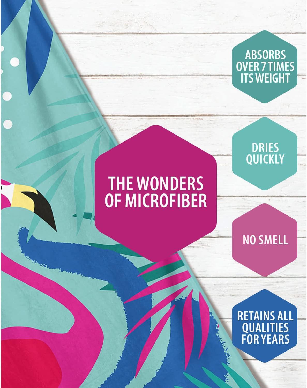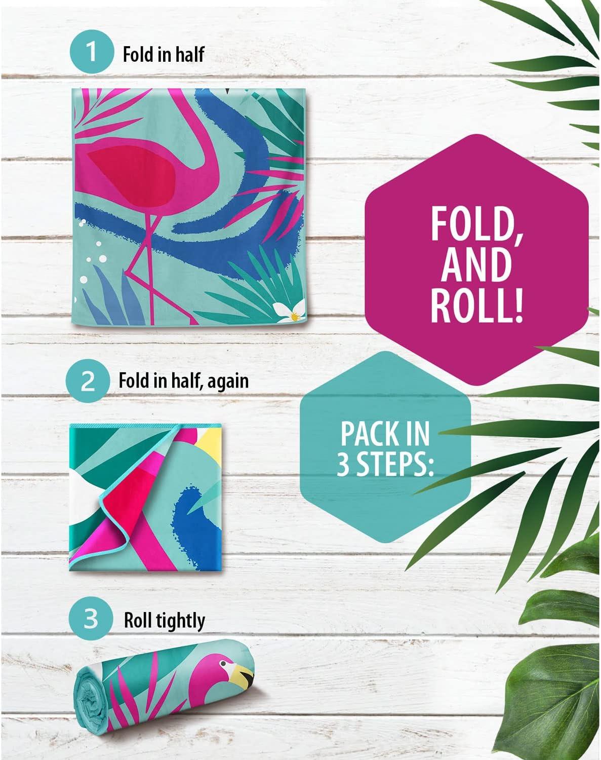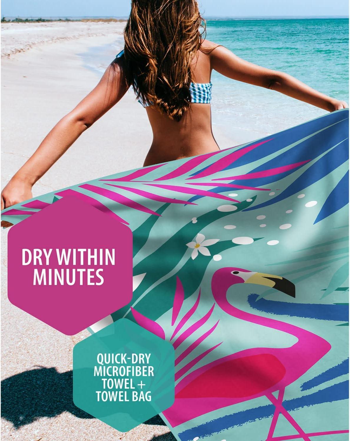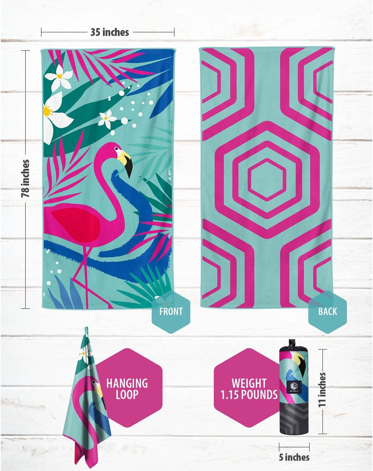 VENTURE 4TH Microfiber Beach Towel: Quick-Dry, Compact, Sand-Free, Absorbent, Sandproof and Lightweight - Perfect for Camping, Beach, and Roadtrips (Blue Lagoon Design | 35x78 inches)(Turquoise Flamingo)