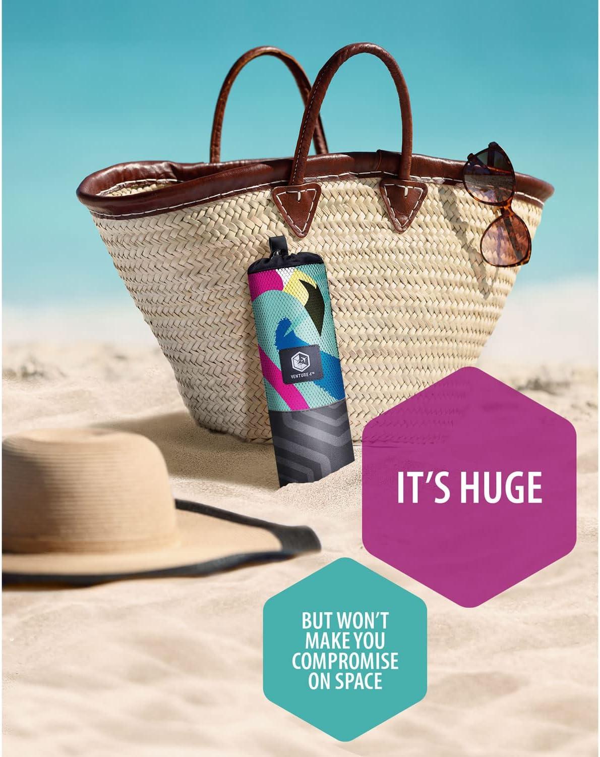 ✅ Large but Easily Folded – Our towel may be large but with a proper folding technique and traveling bag that comes with it, you’ll have plenty of room in your suitcase, backpack or beach bag. Just fold it in half twice, and roll it to fit the bag.