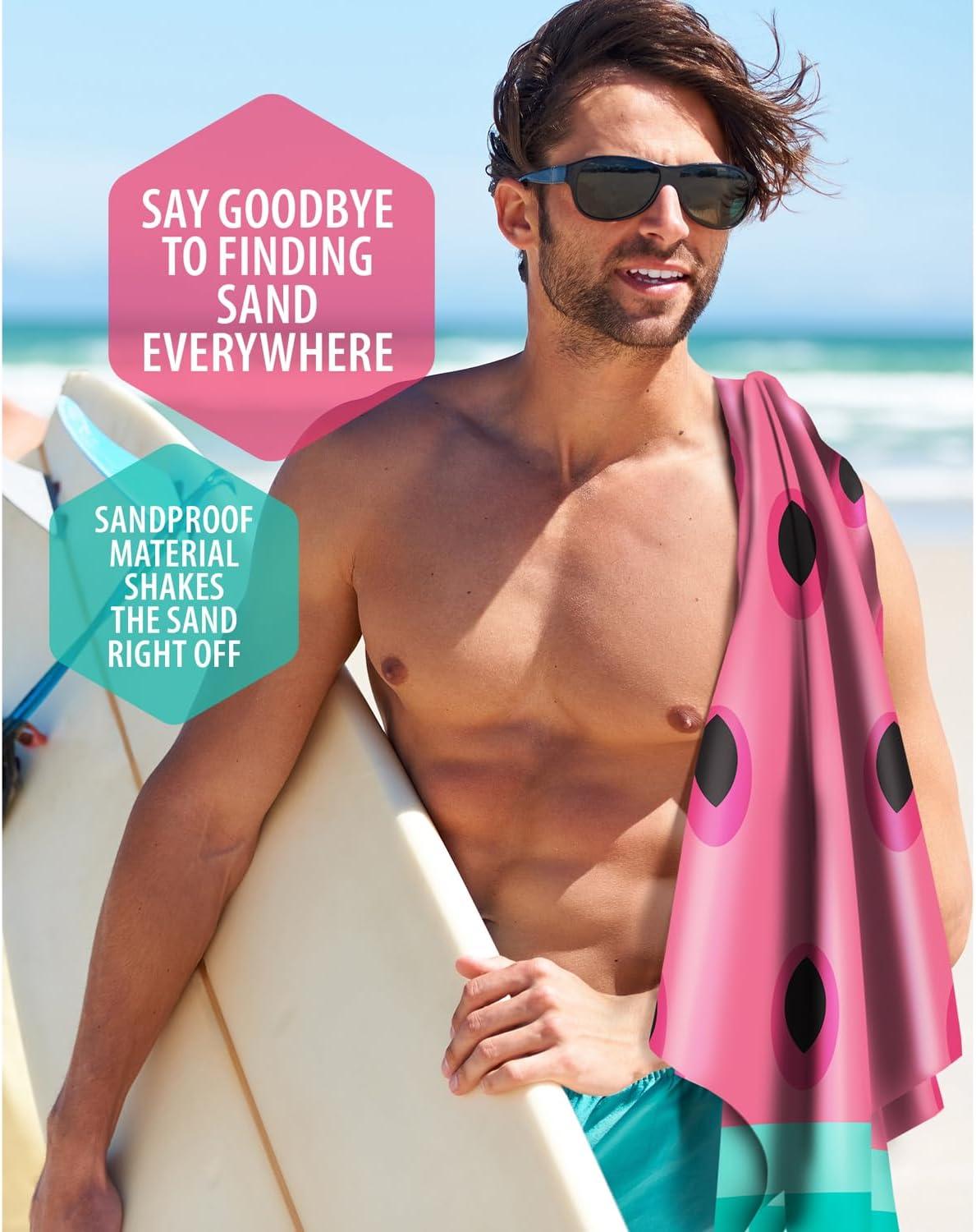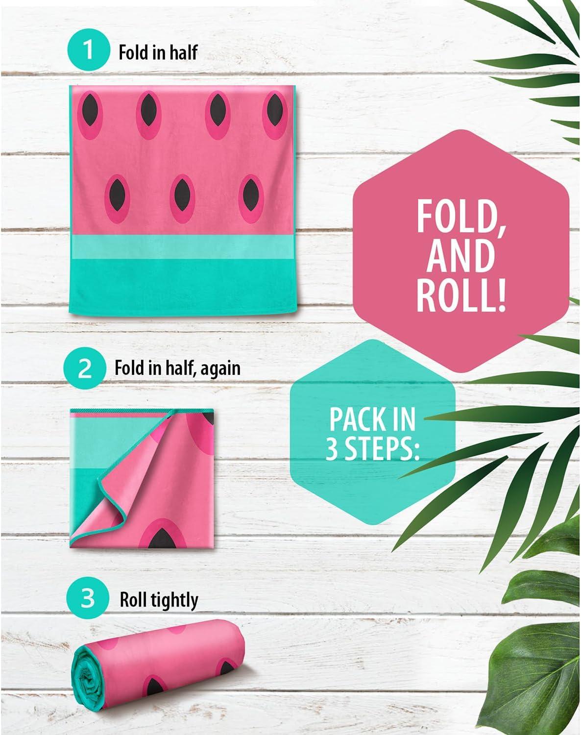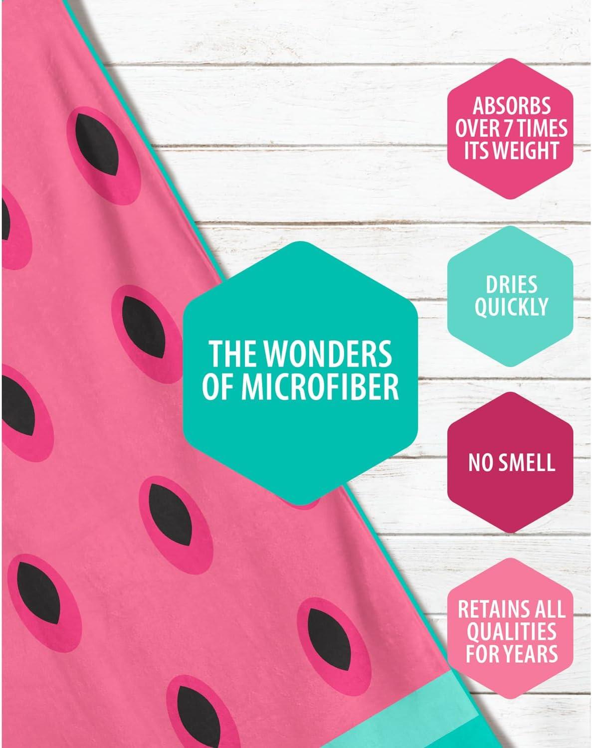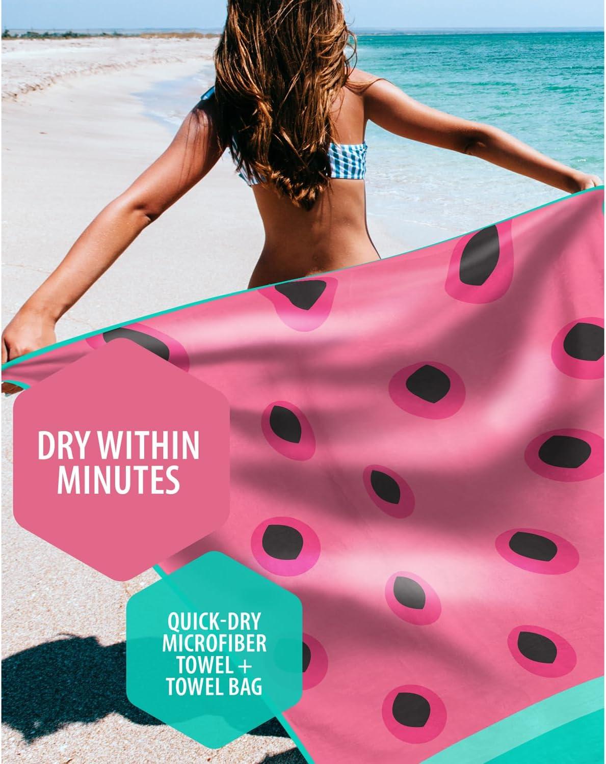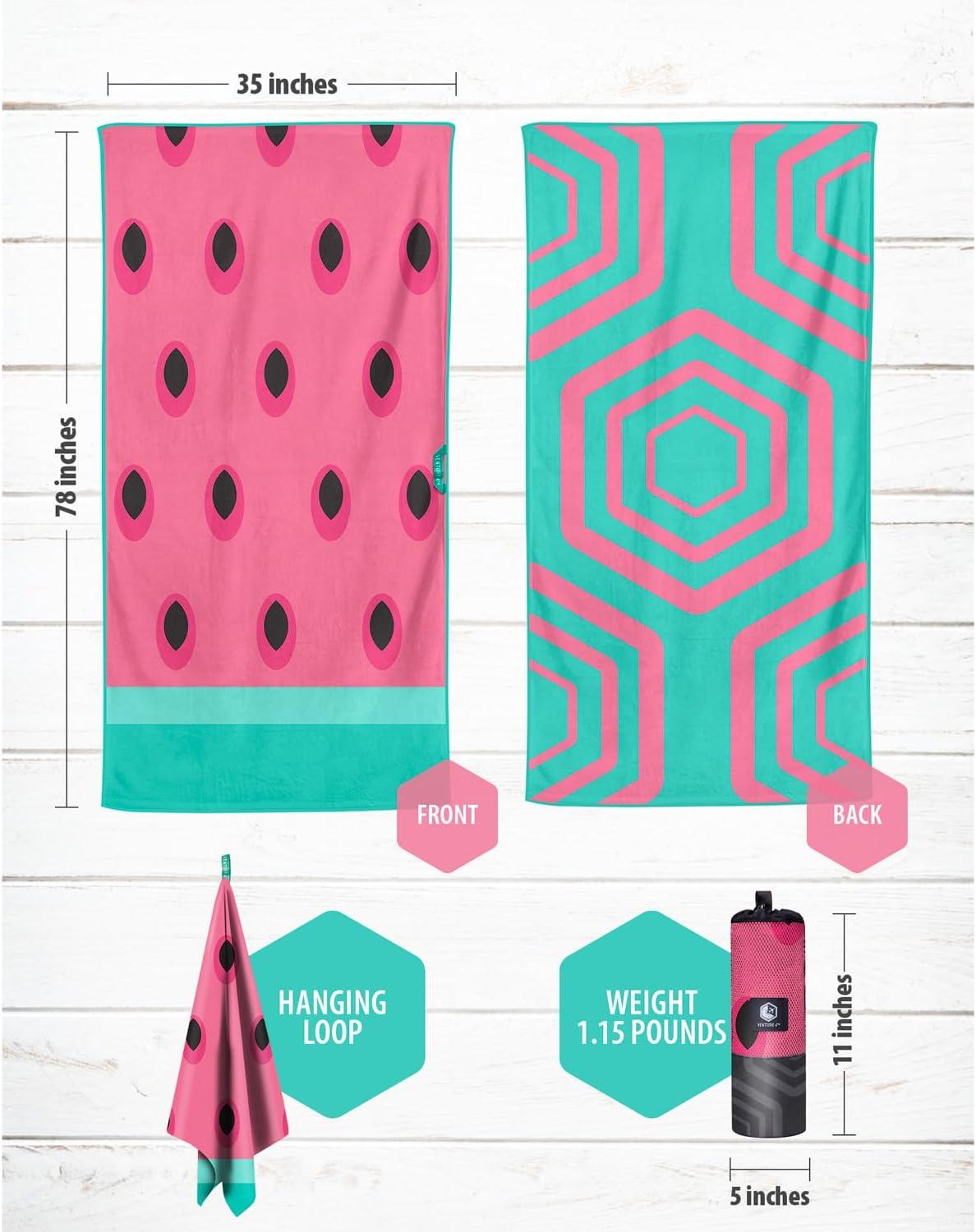 VENTURE 4TH Microfiber Beach Towel: Quick-Dry, Compact, Sand-Free, Absorbent, Sandproof and Lightweight - Perfect for Camping, Beach, and Roadtrips (Blue Lagoon Design | 35x78 inches)(Watermelon)