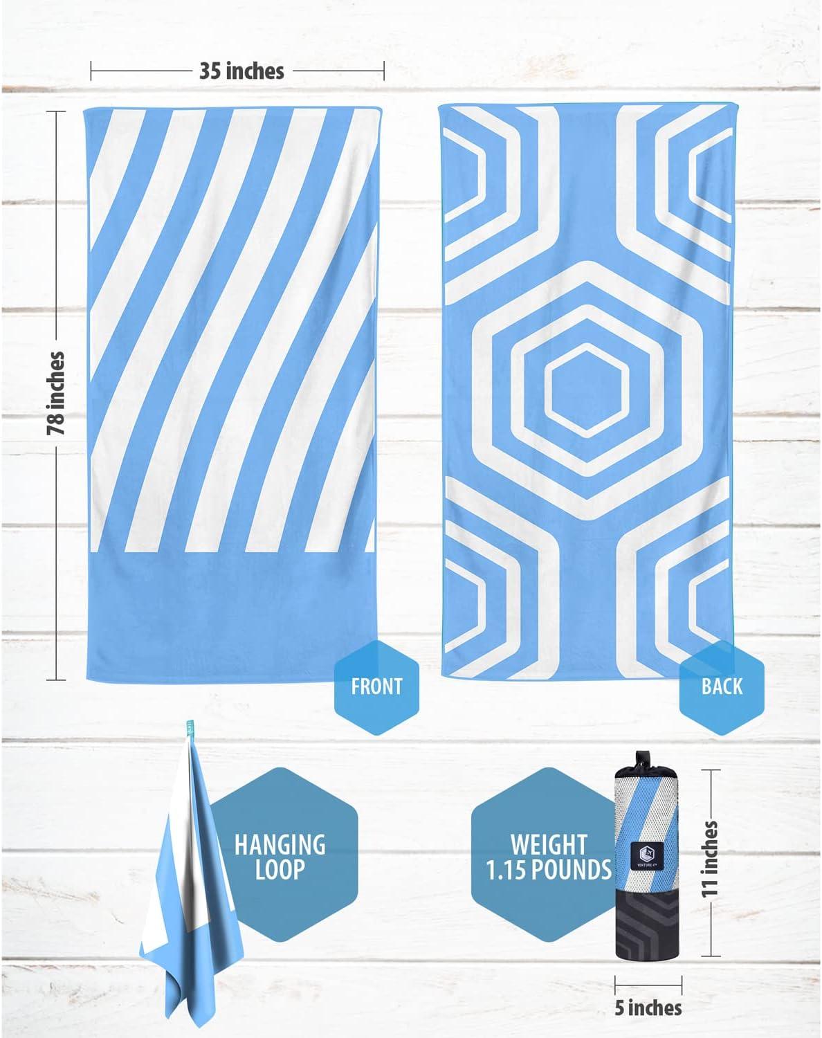 ✅ Sand-Free and Quick Dry – Thanks to the microfiber’s fast drying ability, sand doesn’t stick to it and neither does dirt! No more finding sand for days after you left the beach–with microfiber towels, you leave sand where it belongs.