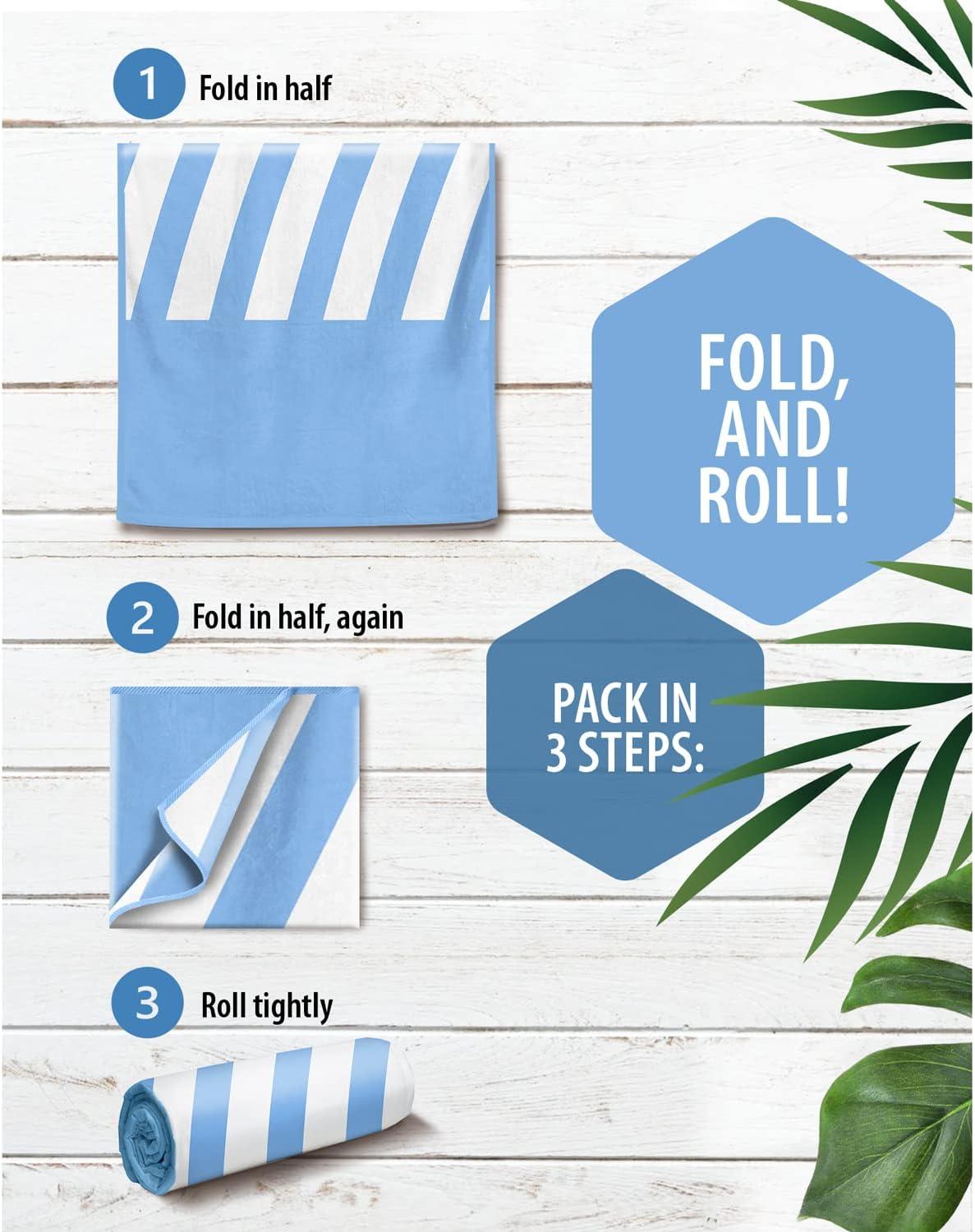 ✅ Large but Easily Folded – Our towel may be large but with a proper folding technique and traveling bag that comes with it, you’ll have plenty of room in your suitcase, backpack or beach bag. Just fold it in half twice, and roll it to fit the bag.