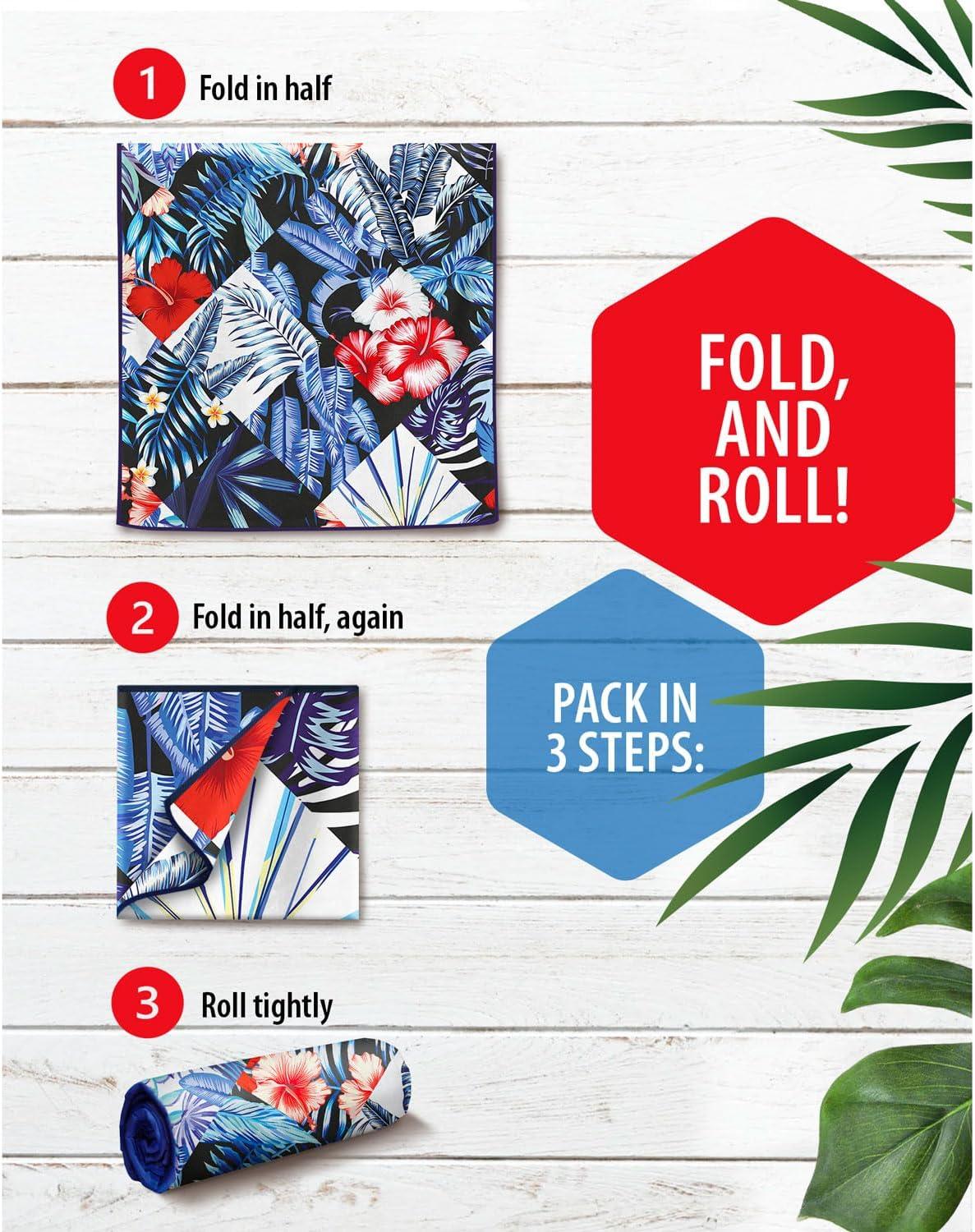 ✅ Large but Easily Folded – Our towel may be large but with a proper folding technique and traveling bag that comes with it, you’ll have plenty of room in your suitcase, backpack or beach bag. Just fold it in half twice, and roll it to fit the bag.