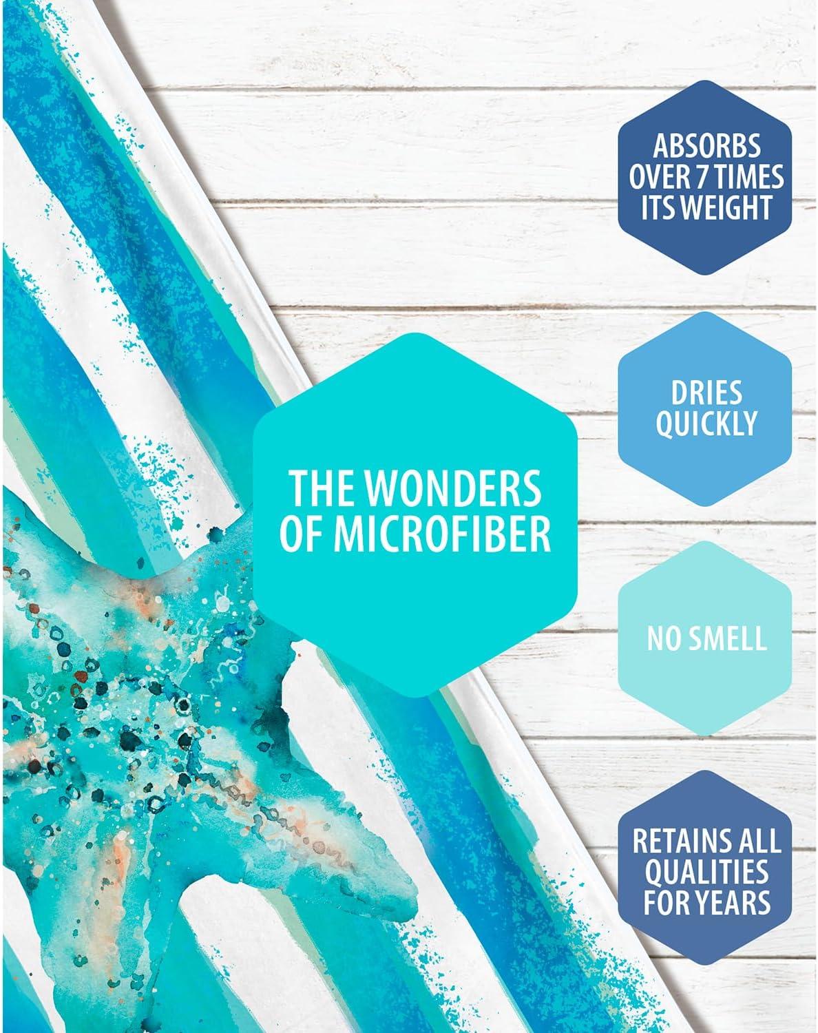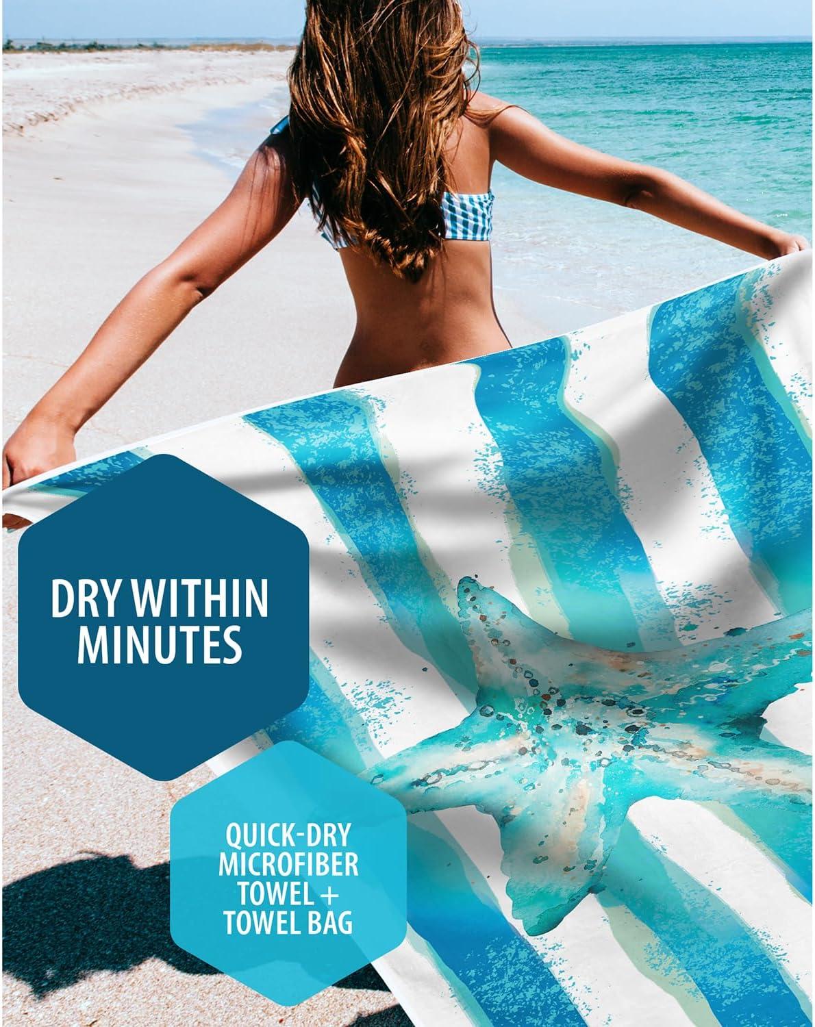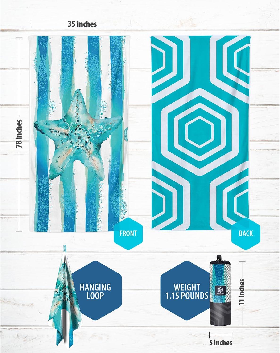 VENTURE 4TH Microfiber Beach Towel: Quick-Dry, Compact, Sand-Free, Absorbent, Sandproof and Lightweight - Perfect for Camping, Beach, and Roadtrips (Striped Starfish Design | 35x78 inches)(Striped Starfish)
