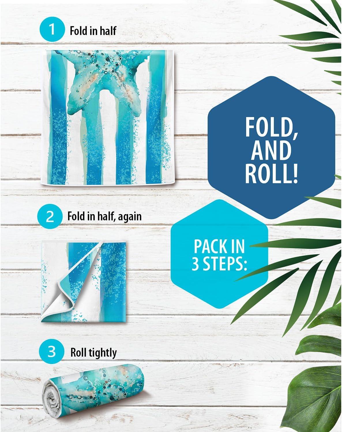 VENTURE 4TH Microfiber Beach Towel: Quick-Dry, Compact, Sand-Free, Absorbent, Sandproof and Lightweight – Perfect for Camping, Beach, and Roadtrips (Striped Starfish Design | 35×78 inches)(Striped Seahorse)