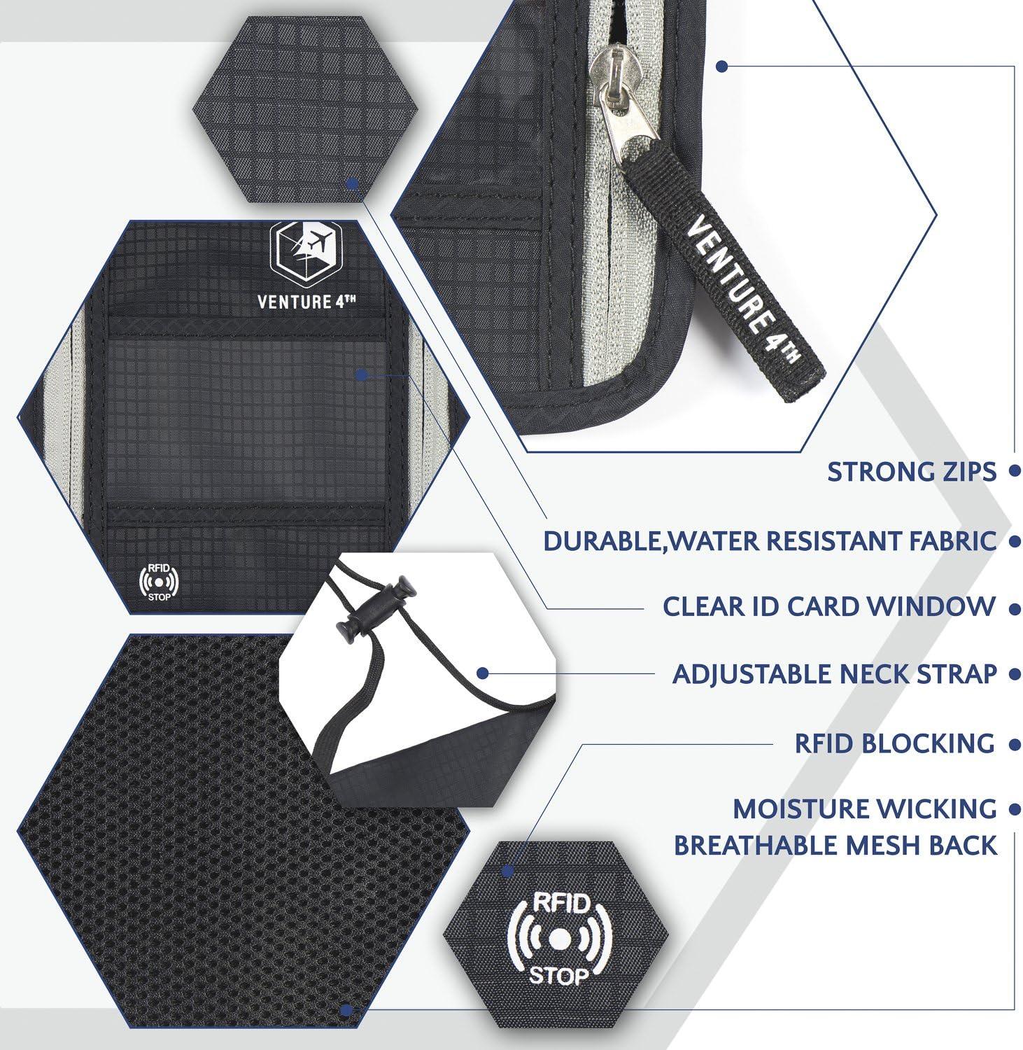 imageVENTURE 4TH Passport Holder Neck Wallet with RFID Blocking Nylon Lining  Hidden Neck Pouch for Travel Sleek BlackBlack
