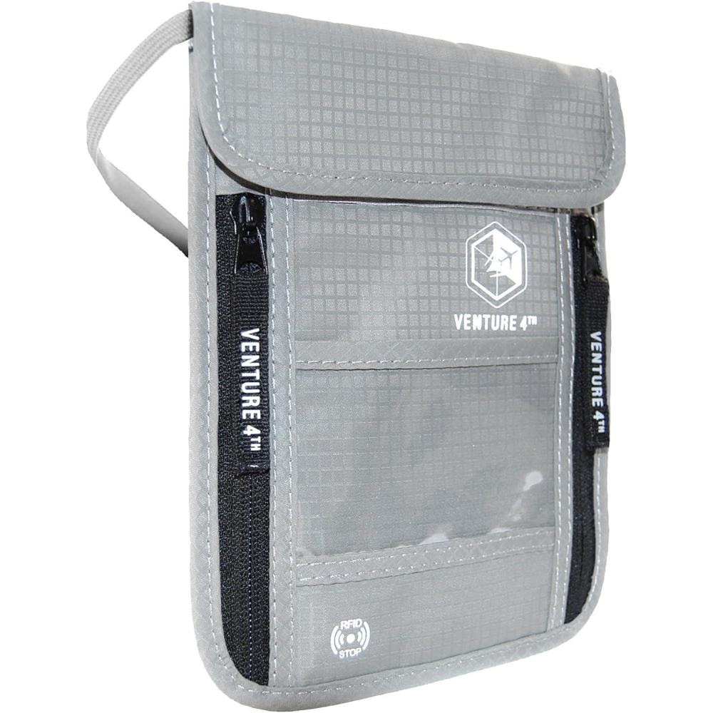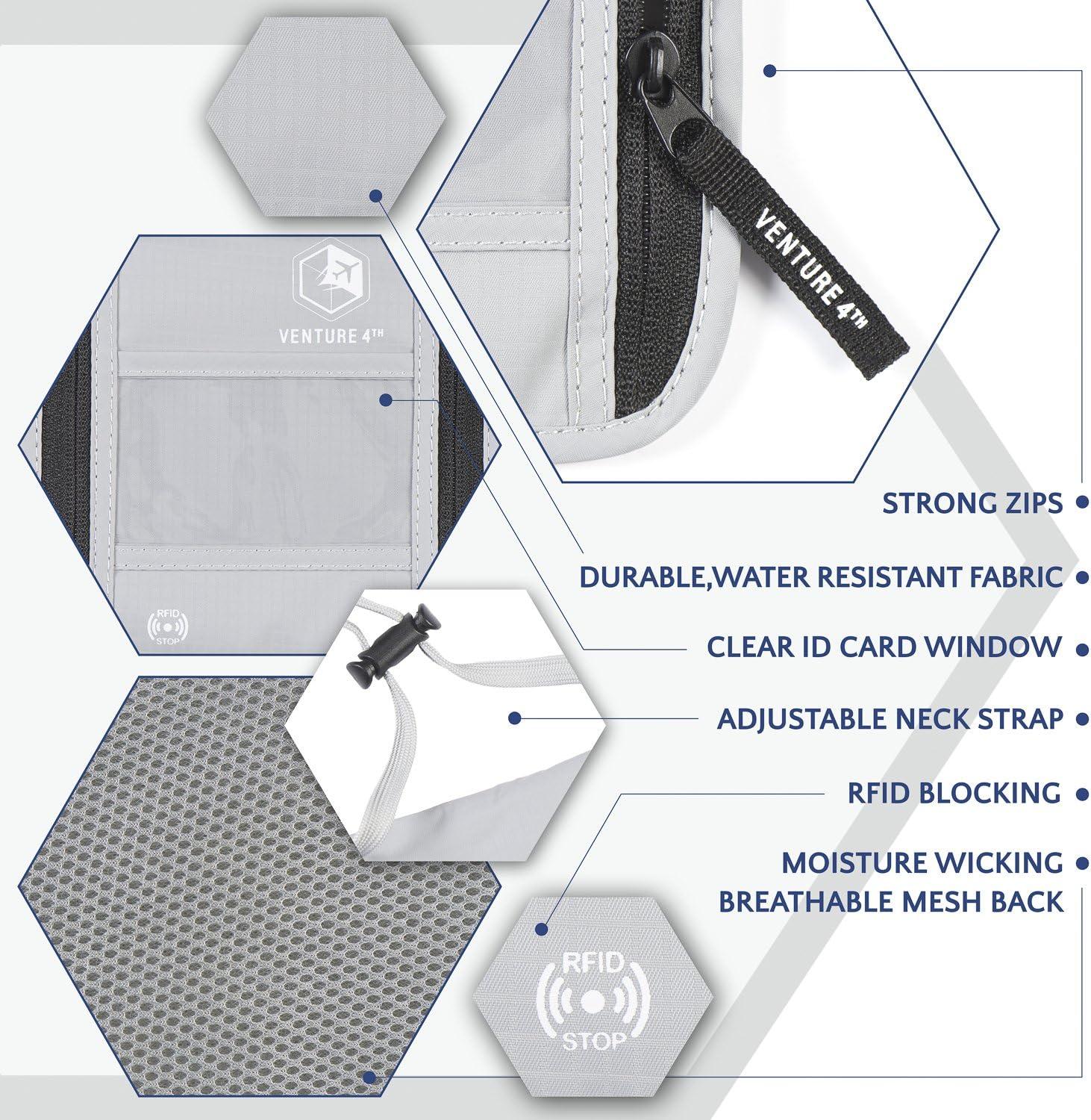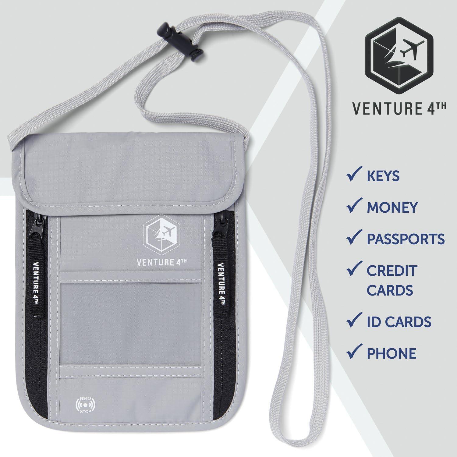 imageVENTURE 4TH Passport Holder Neck Wallet with RFID Blocking Nylon Lining  Hidden Neck Pouch for Travel Sleek BlackSilver