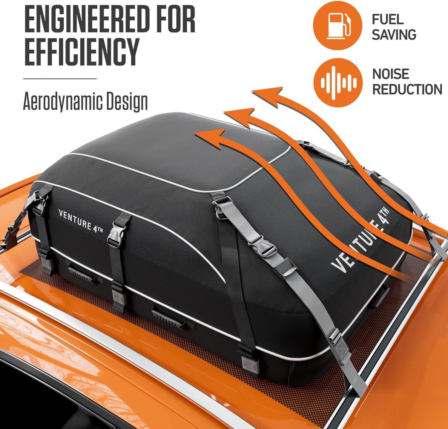 WATERPROOF & DURABLE: Constructed from military-grade PVC fabric with waterproof SBS zippers and protective flap, our cargo carrier ensures your luggage remains dry and secure in all weather conditions. Capable of holding up to 10 carry-on bags.
