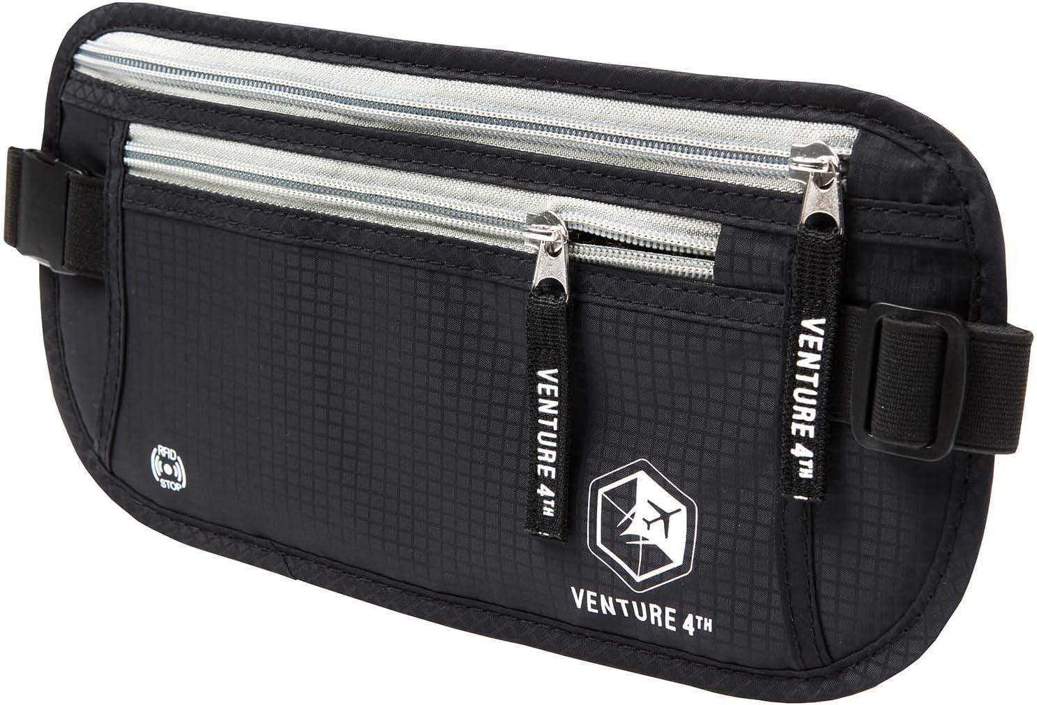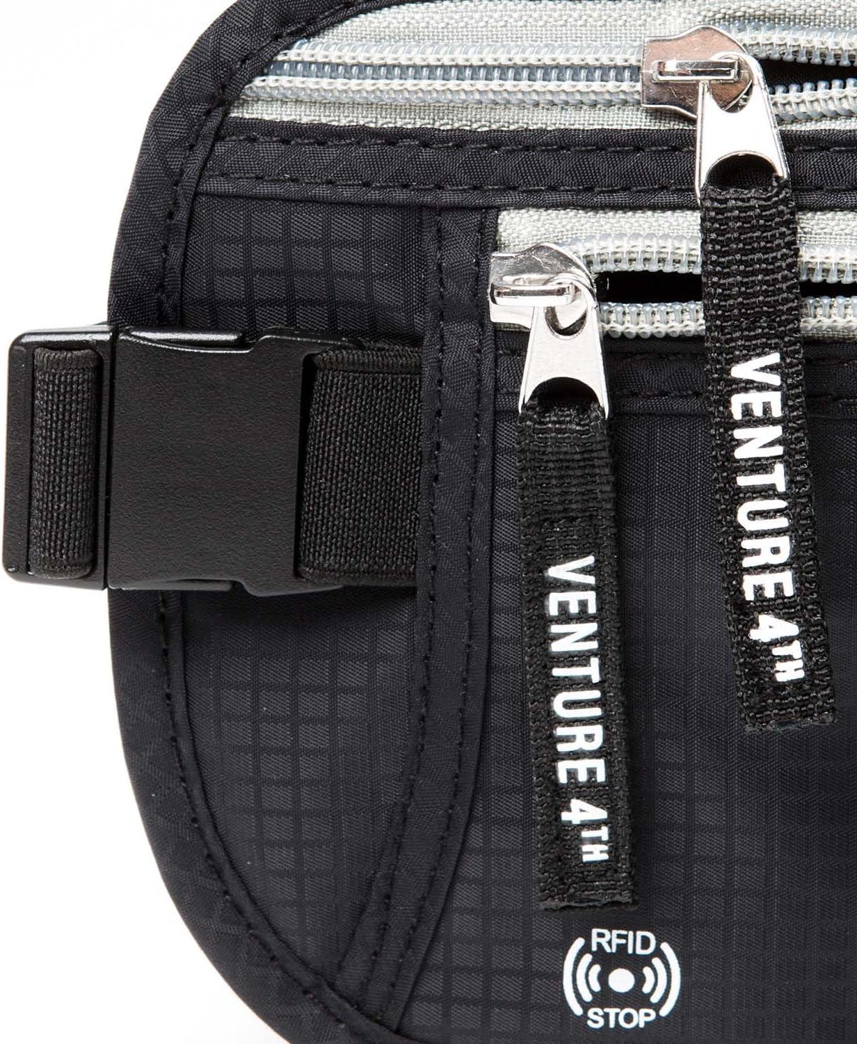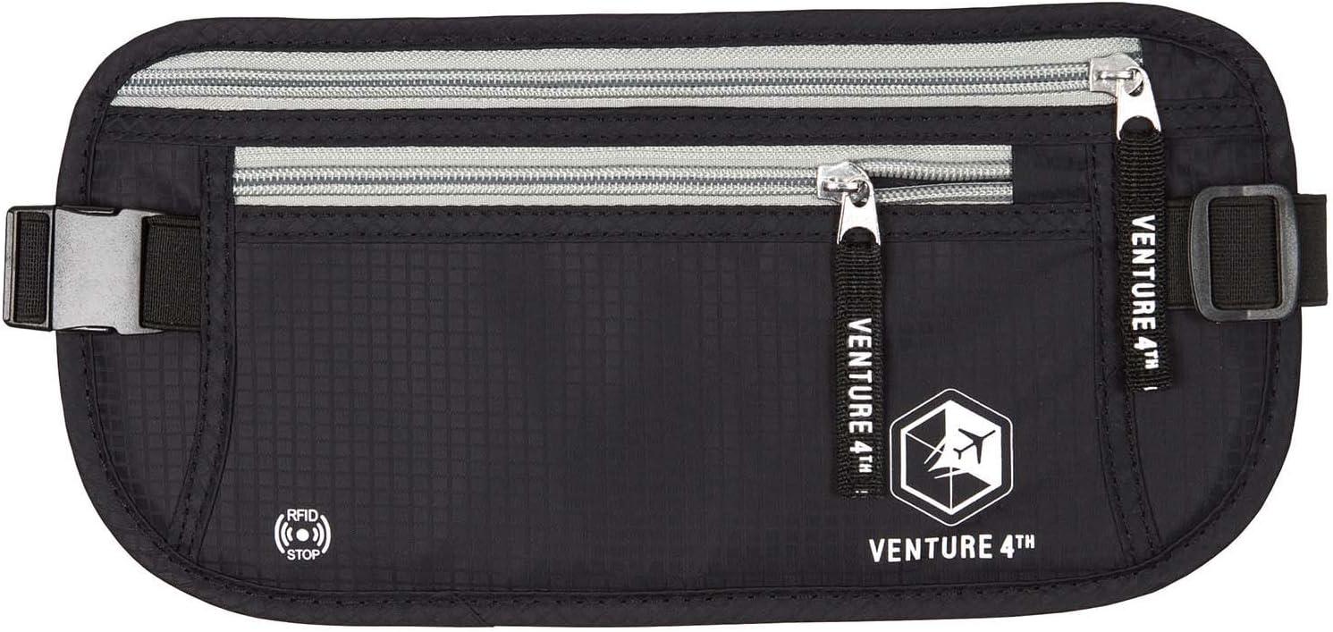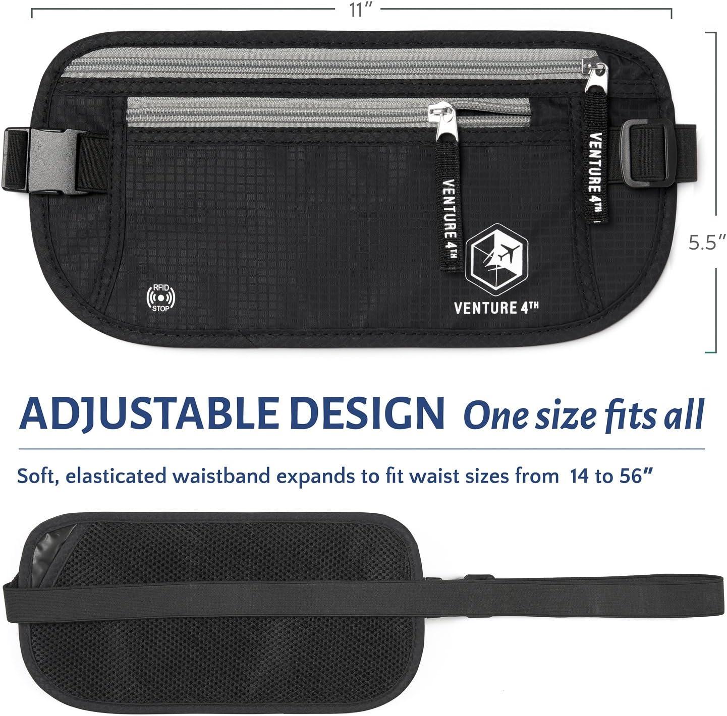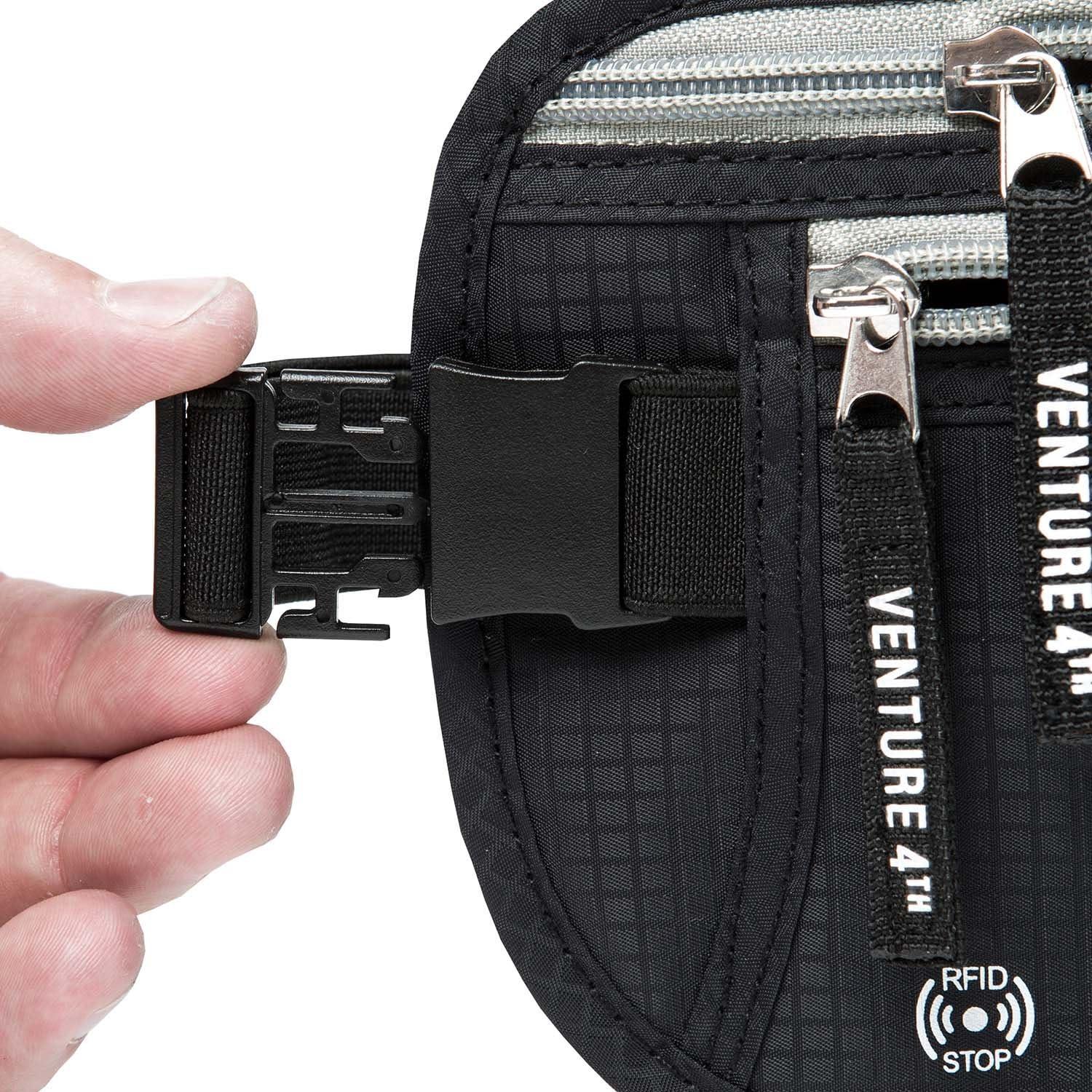 VENTURE 4TH Slim Minimalist Design RFID Money Belt with RFID Blocking Sleeves, for Men and Women – Ideal for Keeping Your Cash, Credit Card, Passport, Phone Secure When Traveling – Brown(Black)
