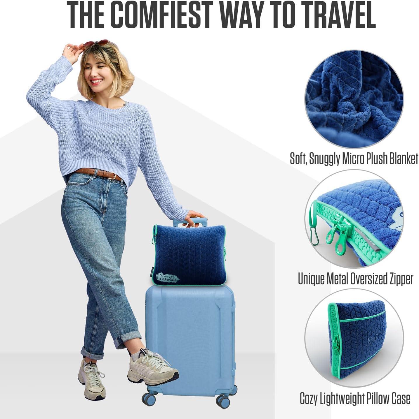 TRANSFORM YOUR TRAVELS WITH SUPERIOR COMFORT – Say goodbye to thin, scratchy airline blankets! At 68” x 42”, our ultra-soft micro plush blanket offers unmatched warmth, a velvety feel, and durable fabric that resists pilling. Use it as a cozy blanket or fold it into its case for a supportive pillow—perfect for flights, road trips, camping, or relaxing at home.