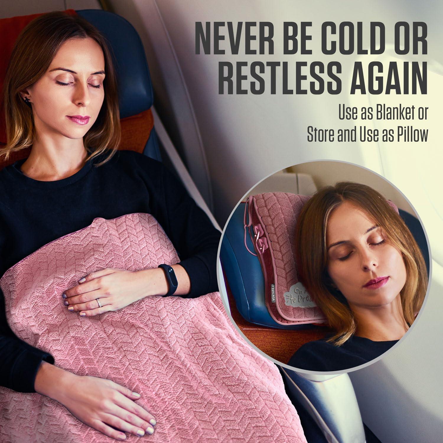 TRANSFORM YOUR TRAVELS WITH SUPERIOR COMFORT – Say goodbye to thin, scratchy airline blankets! At 68” x 42”, our ultra-soft micro plush blanket offers unmatched warmth, a velvety feel, and durable fabric that resists pilling. Use it as a cozy blanket or fold it into its case for a supportive pillow—perfect for flights, road trips, camping, or relaxing at home.