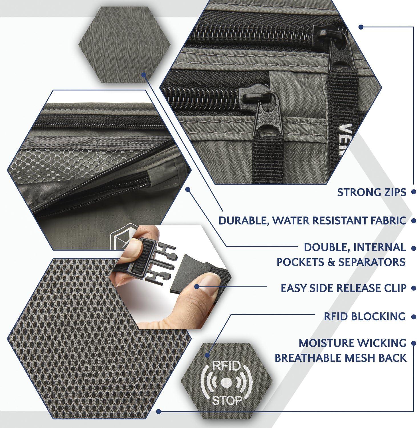 What makes this Money Belt and Microfiber Travel Towel bundle ideal for travel and vacations? . Our Travel Towel Made from premium microfiber, it's engineered to be seven times more absorbent than a conventional gym towel. The microfiber material is thin yet robust, soft, and almost entirely lint-free. But its most remarkable feature is its quick-drying ability. Not only will you dry off in minutes, but the microfiber towel itself will also be ready for its next use in no time. Our quick dry beach towel also comes with odor-repellent qualities. The microfiber material naturally wicks away odors, ensuring that your towel smells fresh, use after use. One of the challenges of travel is packing efficiently, and a bulky towel can often take up more space than you'd like. That's no longer a concern with our microfiber bath towels. It's so light and compact that it won't add to your baggage weight or take up unnecessary room in your suitcase. Our Money Belt is ergonomically designed to keep you cool and dry all day whilst offering full RFID-protection. Keep your cash, credit cards and passport out of sight. Made to Last – Double Stitching and RFID 210D Ripstop Nylon ensure durability. Adjustable – Fitted with an elasticated belt, one size fits both women and men. Why Choose the Venture 4th Money Belt? Travelling should be fun, you can enjoy your holiday or business trip, without worrying about your passport, credit cards or smart phone being stolen. A secure undercover money belt for men and women, this anti-theft organizer is virtually invisible underneath your clothes, yet it has plenty of space for your everyday essentials. Key features include- Separate mesh compartments for your credit cards and valuables on the inside, soft mesh panel at rear to wick away sweat and keep you dry in tropical destinations.