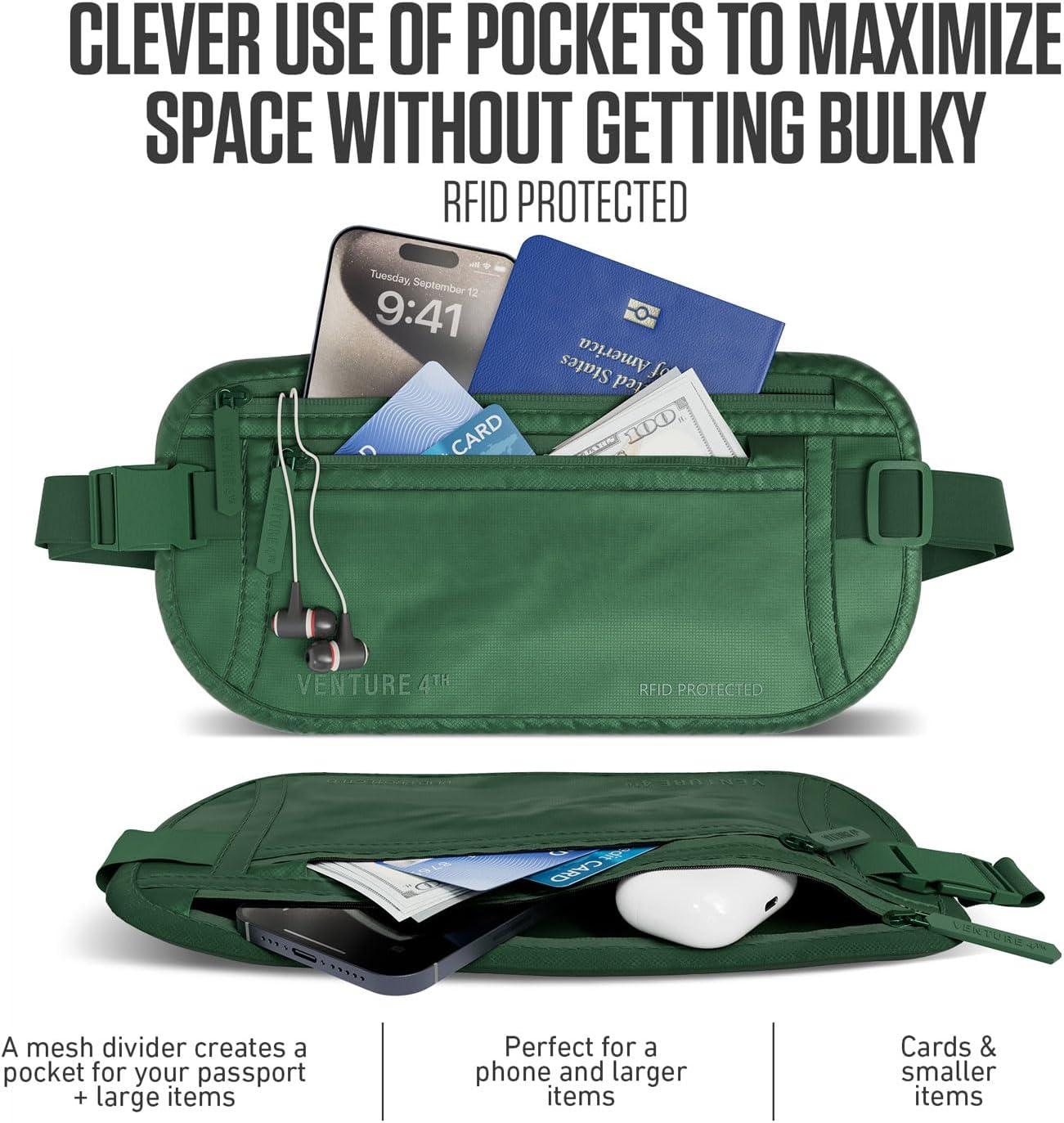 imageVENTURE 4TH Travel Money Belt  Slim Passport Holder RFID Blocking Travel Pouch to Protect Cash Credit Cards and Travel Documents BrownSleek Army Green