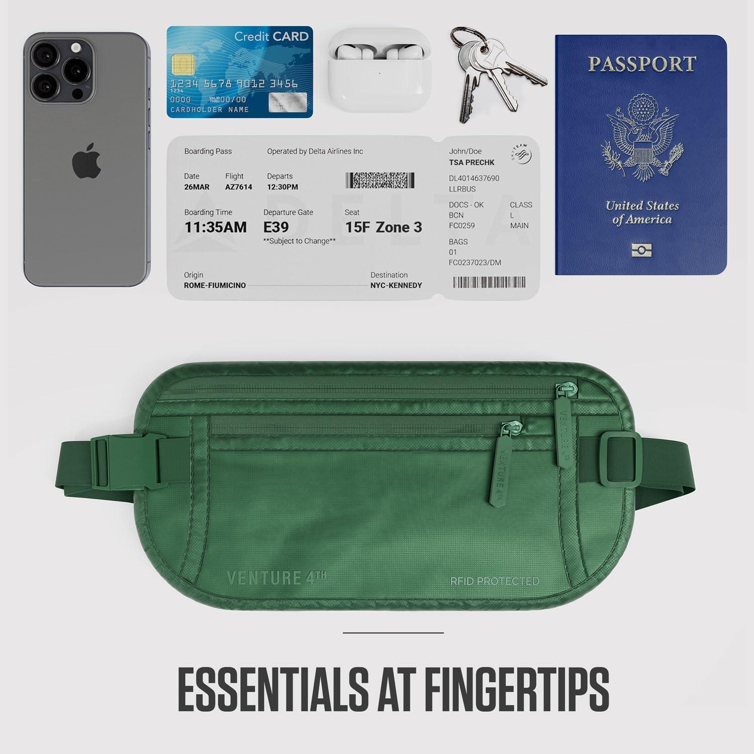 VENTURE 4TH Travel Money Belt - Slim Passport Holder RFID Blocking Travel Pouch to Protect Cash, Credit Cards and Travel Documents (Brown)(Sleek Army Green)