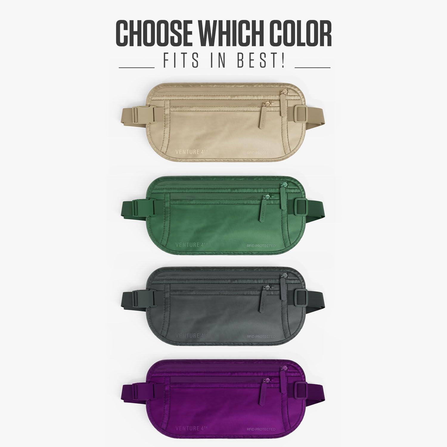 imageVENTURE 4TH Travel Money Belt  Slim Passport Holder RFID Blocking Travel Pouch to Protect Cash Credit Cards and Travel Documents BrownSleek Army Green