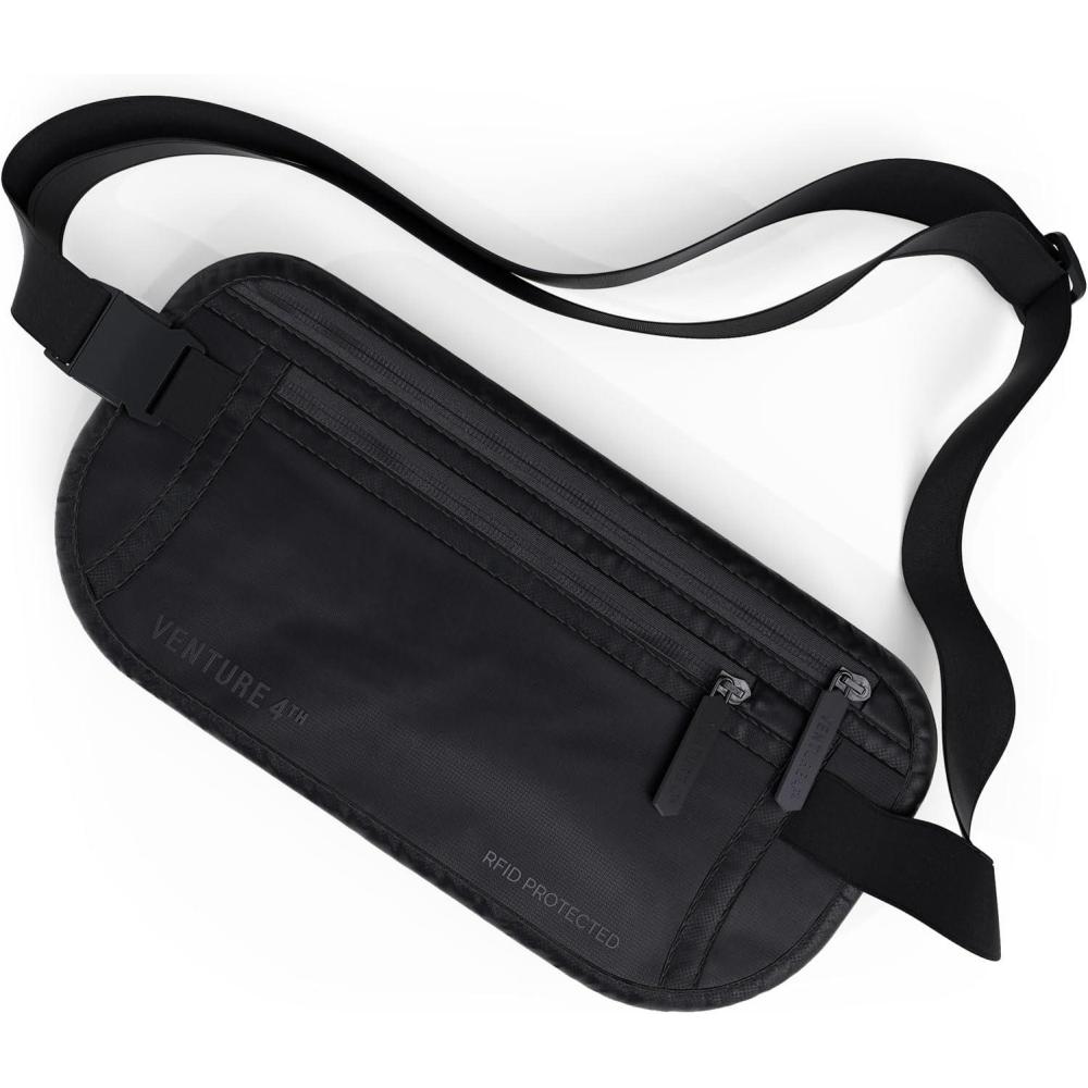 imageVENTURE 4TH Travel Money Belt  Slim Passport Holder RFID Blocking Travel Pouch to Protect Cash Credit Cards and Travel Documents BrownSleek Black