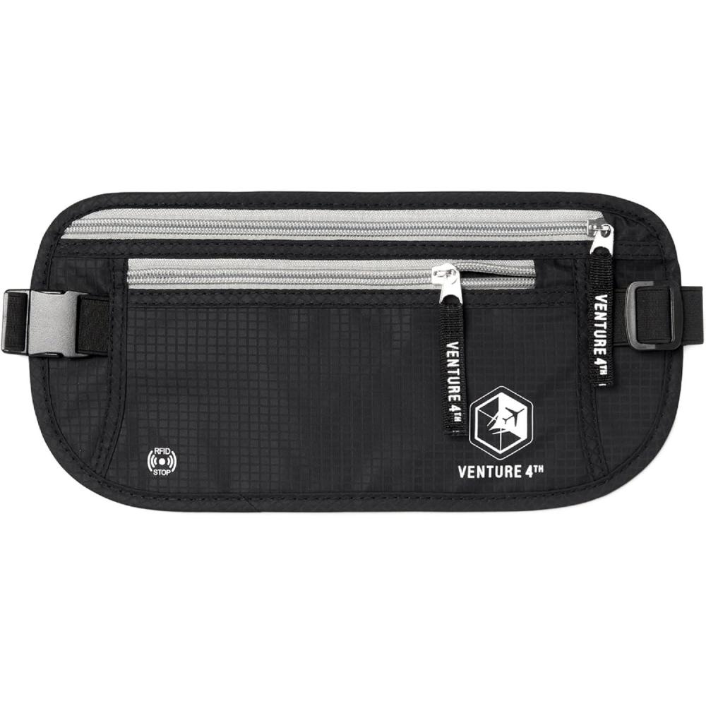 imageVENTURE 4TH Travel Money Belt  Slim Passport Holder RFID Blocking Travel Pouch to Protect Cash Credit Cards and Travel Documents GrayBlack