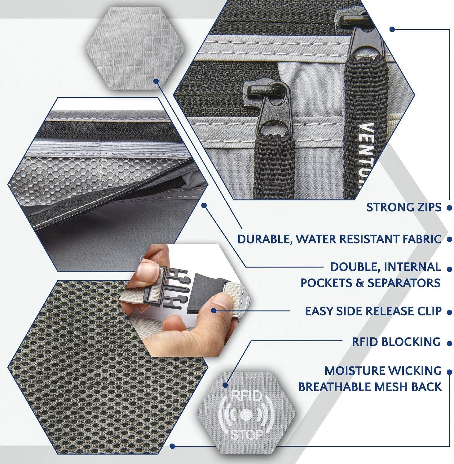 VENTURE 4TH Travel Money Belt – Slim Passport Holder RFID Blocking Travel Pouch to Protect Cash, Credit Cards and Travel Documents (Gray)(Silver)