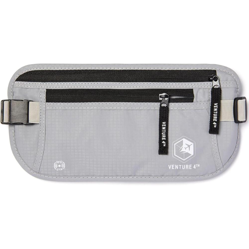 imageVENTURE 4TH Travel Money Belt  Slim Passport Holder RFID Blocking Travel Pouch to Protect Cash Credit Cards and Travel Documents GraySilver
