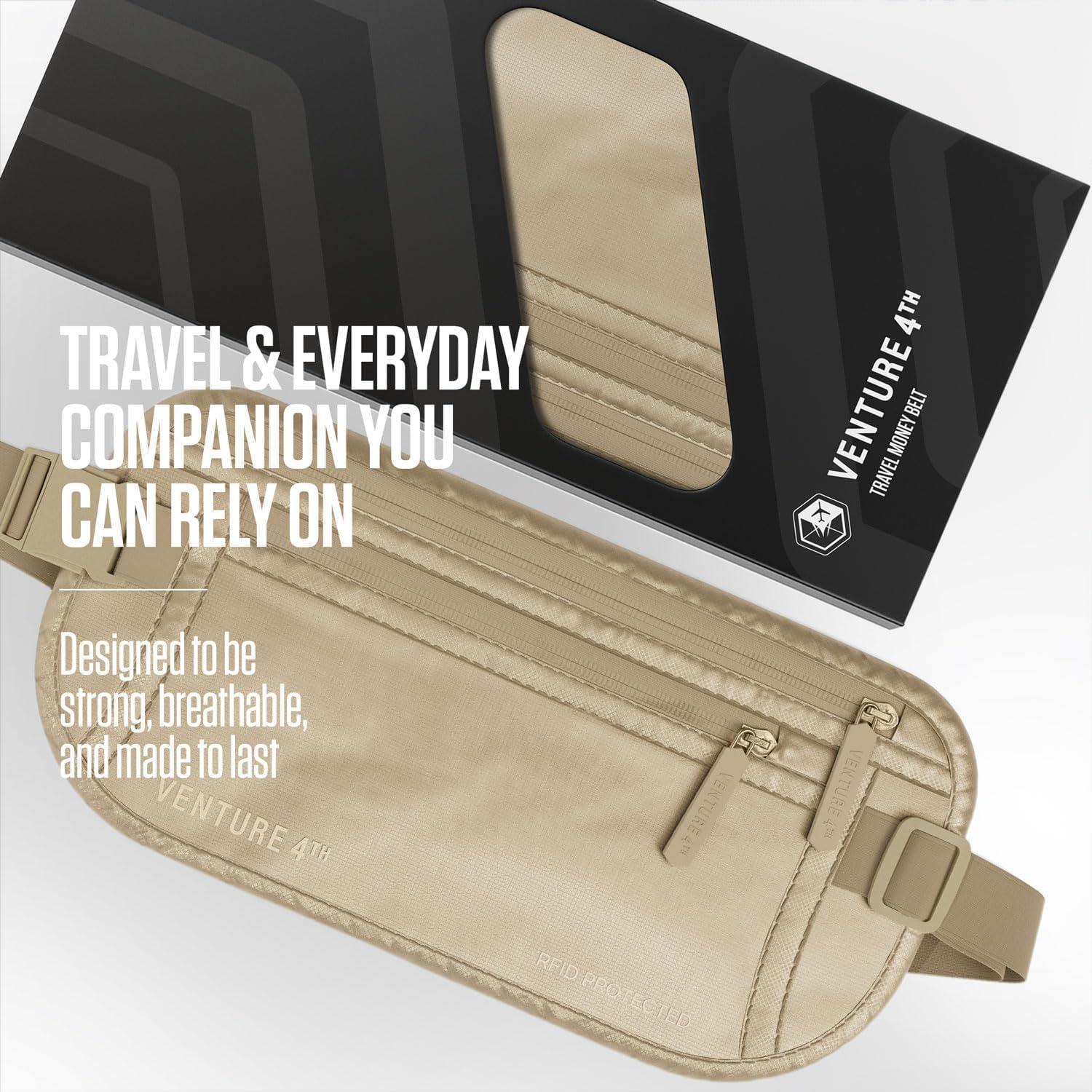 VENTURE 4TH Travel Money Belt - Slim Passport Holder RFID Blocking Travel Pouch to Protect Cash, Credit Cards and Travel Documents (Gray)(Sleek Beige)